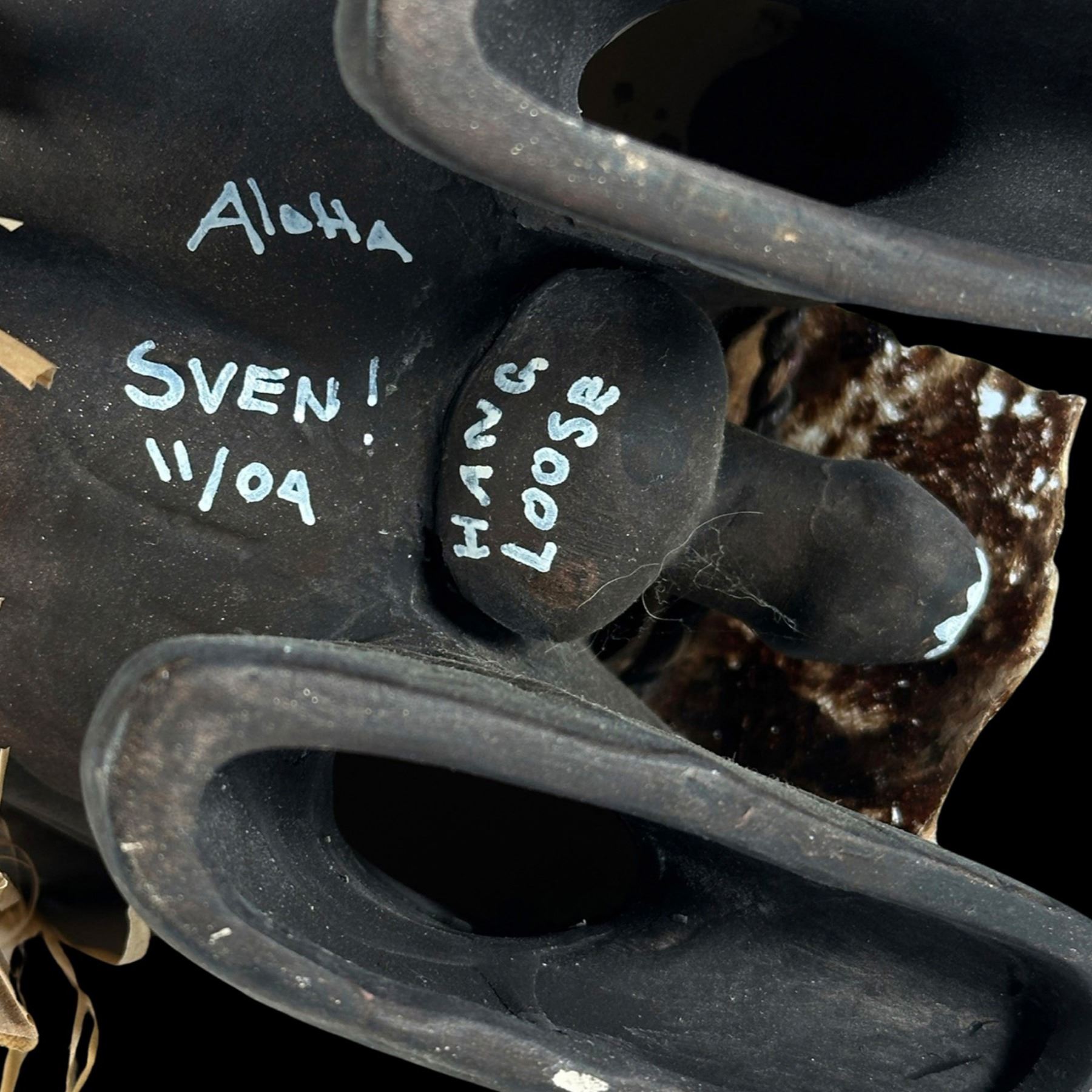 (2005)* One of Gecko's earliest Tiki creations, yet also one of the most elaborate mugs ever to be produced. VG+ with typical wear. 5"dia x 9".