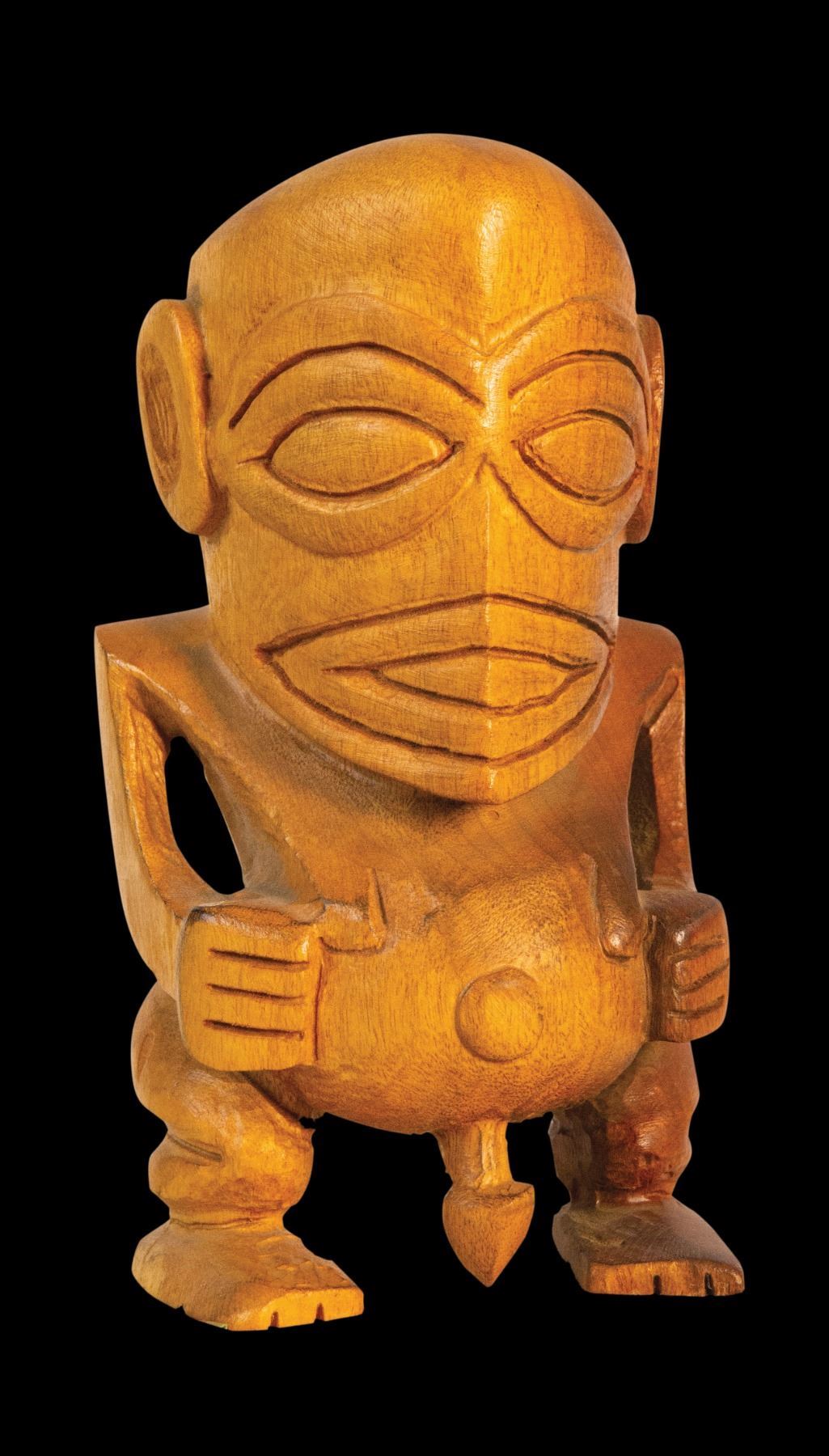 (1960s) Here is another rare master pattern to one of the most well known OA tiki figures: The Cook Island Fisherman's God. This is the original with phallus, slightly different than the previous #214 pattern. 7"x3.75". VG+ with typical wear for a pattern piece.