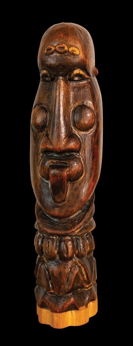 (Early 1960s) A handsome figural master pattern carving, this style mainly used as door pulls. Spindle chocks present.11.75"x3".VG+ with typical wear.