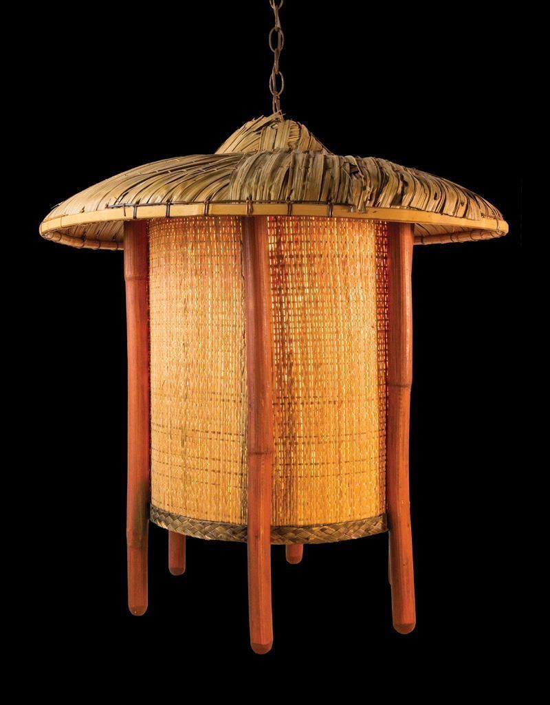 (1960s) This purely OA-style rattan lamp was available in two sizes.28"x17.5".VG+ with typical wear.