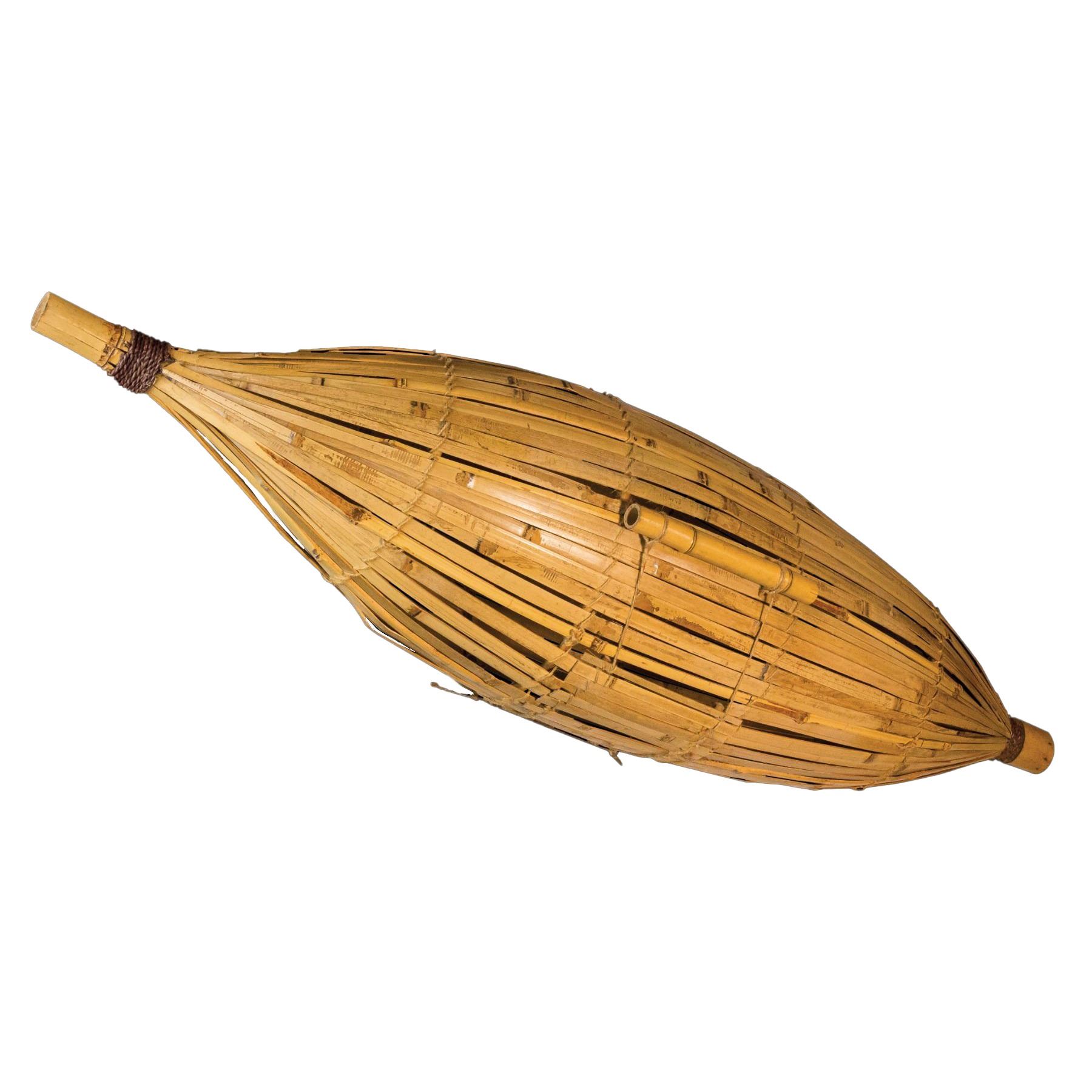 (1990s) OA has prided itself on offering the finest available imported Tahitian Fish Traps from their original supplier since 1960. These finely crafted traps are far more refined than sloppier looking, cheaper modern imports from China or the Philippines. Although this is not electrified, these were sold as not requiring diffusion and have an entry door on top for placement of a light fixture. A staple of any Tiki Bar! * PLEASE NOTE: The photo shown is the type of trap but not the exact item. We assure the buyer the trap will approximate this photo. Approx 12"x48". VG+ with typical wear.