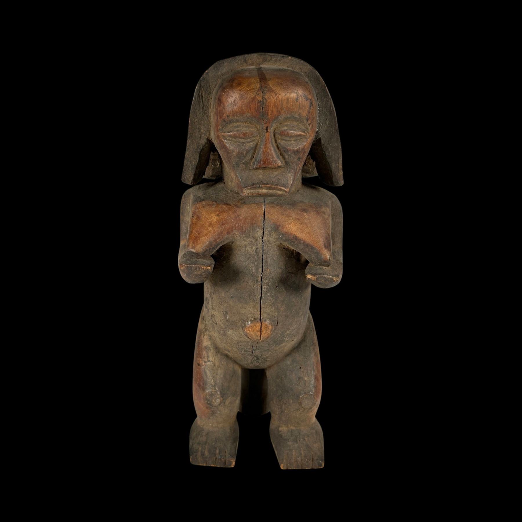 (1910s)* Harry's Harbor Bazaar is a venerable curio shop in the port of Hamburg, immortalized by Tom Waits as "Harry's Harbour Bizarre" in "The Black Rider". This primitive was a gift to Sven from the proprietor after his triumphant return to his home city, now a local hero for his urban archeological work back in the United States. VG+ with typical wear. 4.75"x11.25"x4.25".