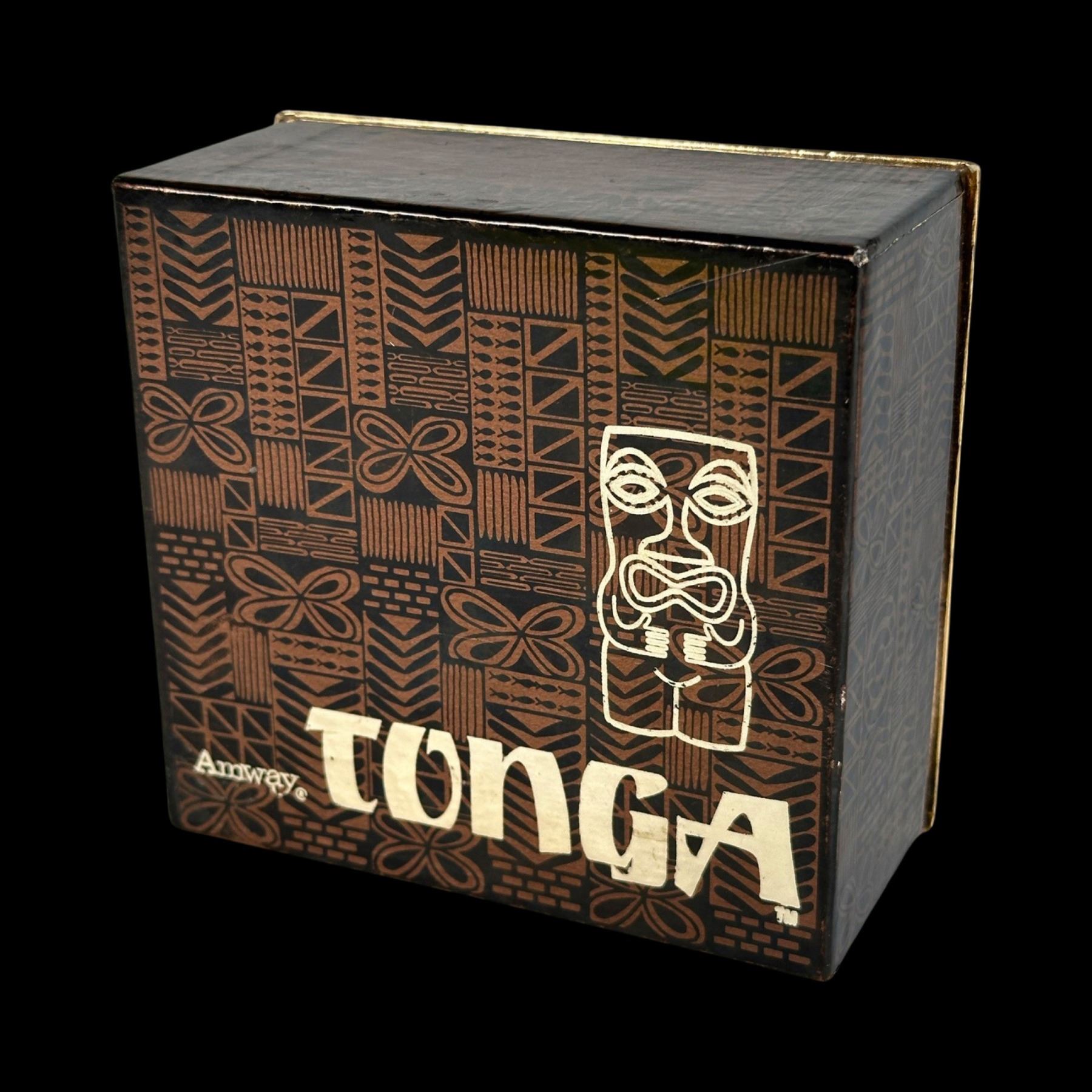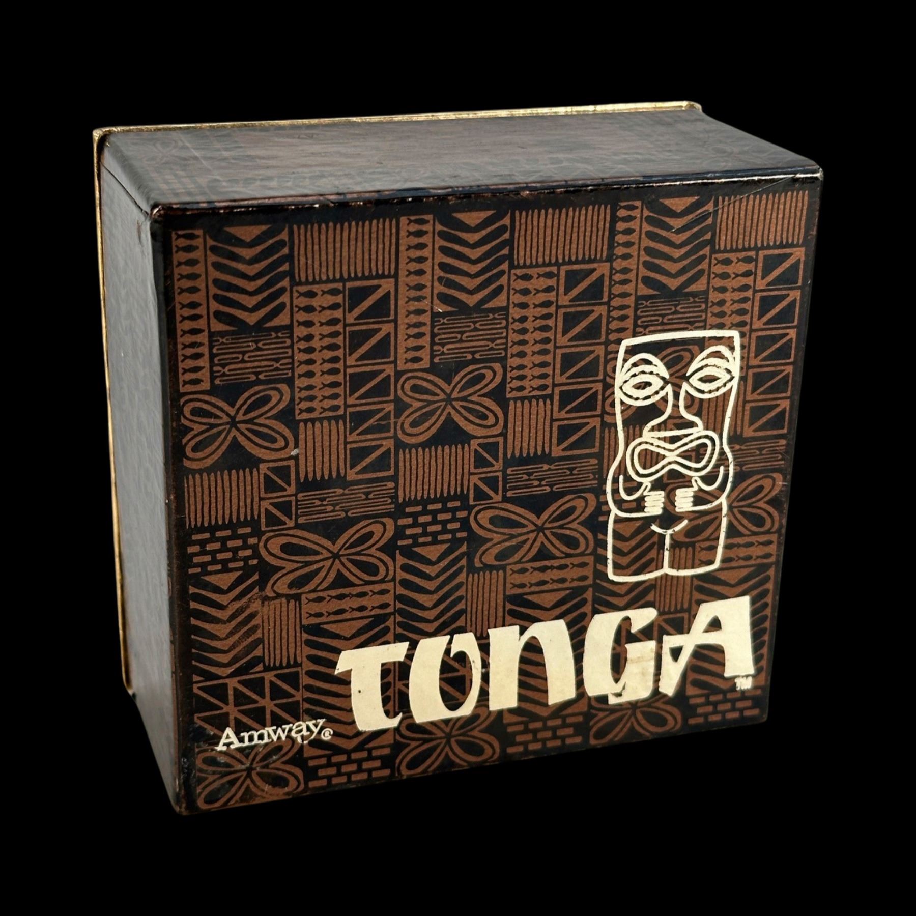 (1970s)* Lather up, Amway style! Still reeks of musky goodness. Unused in box. Museum piece displayed at the Musee Quai Branly and at the Catalina Museum. VG+. 4.5"x4.25"x2".