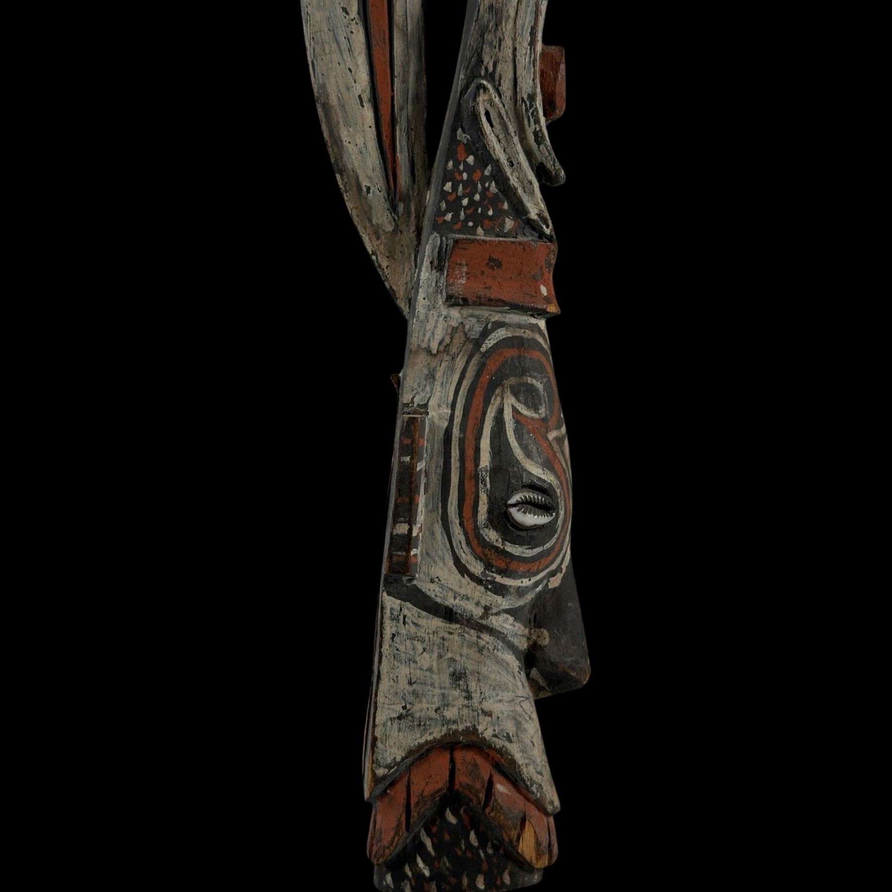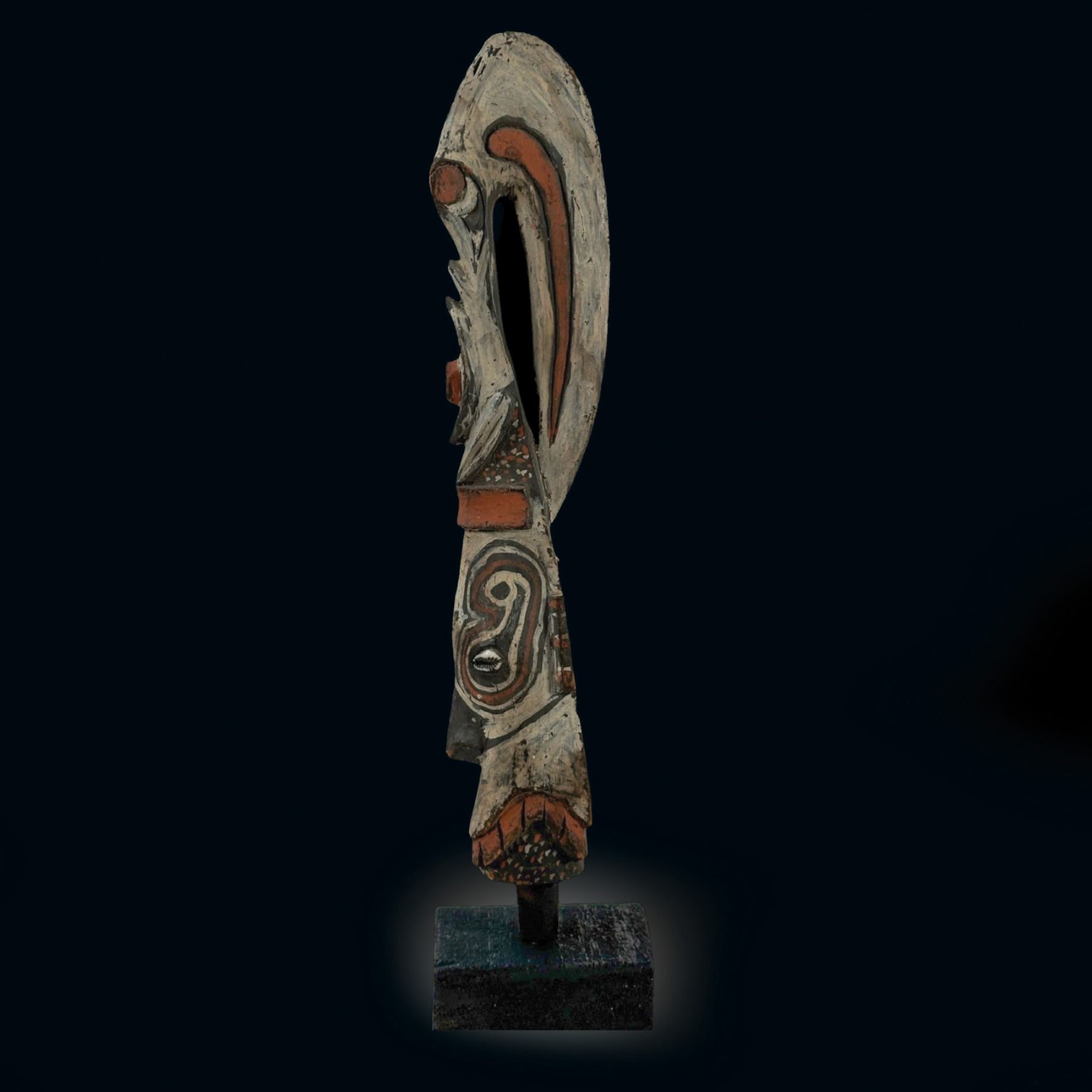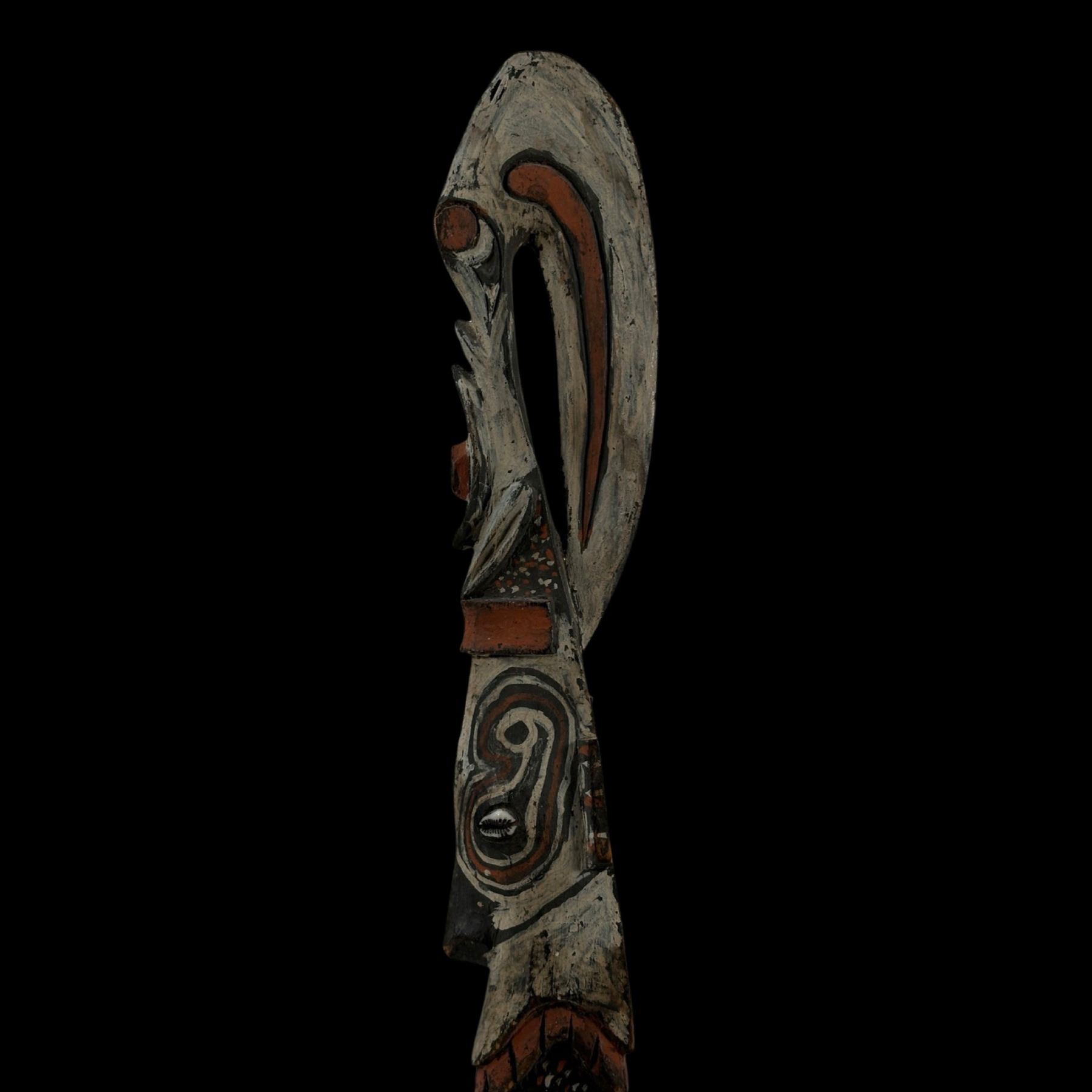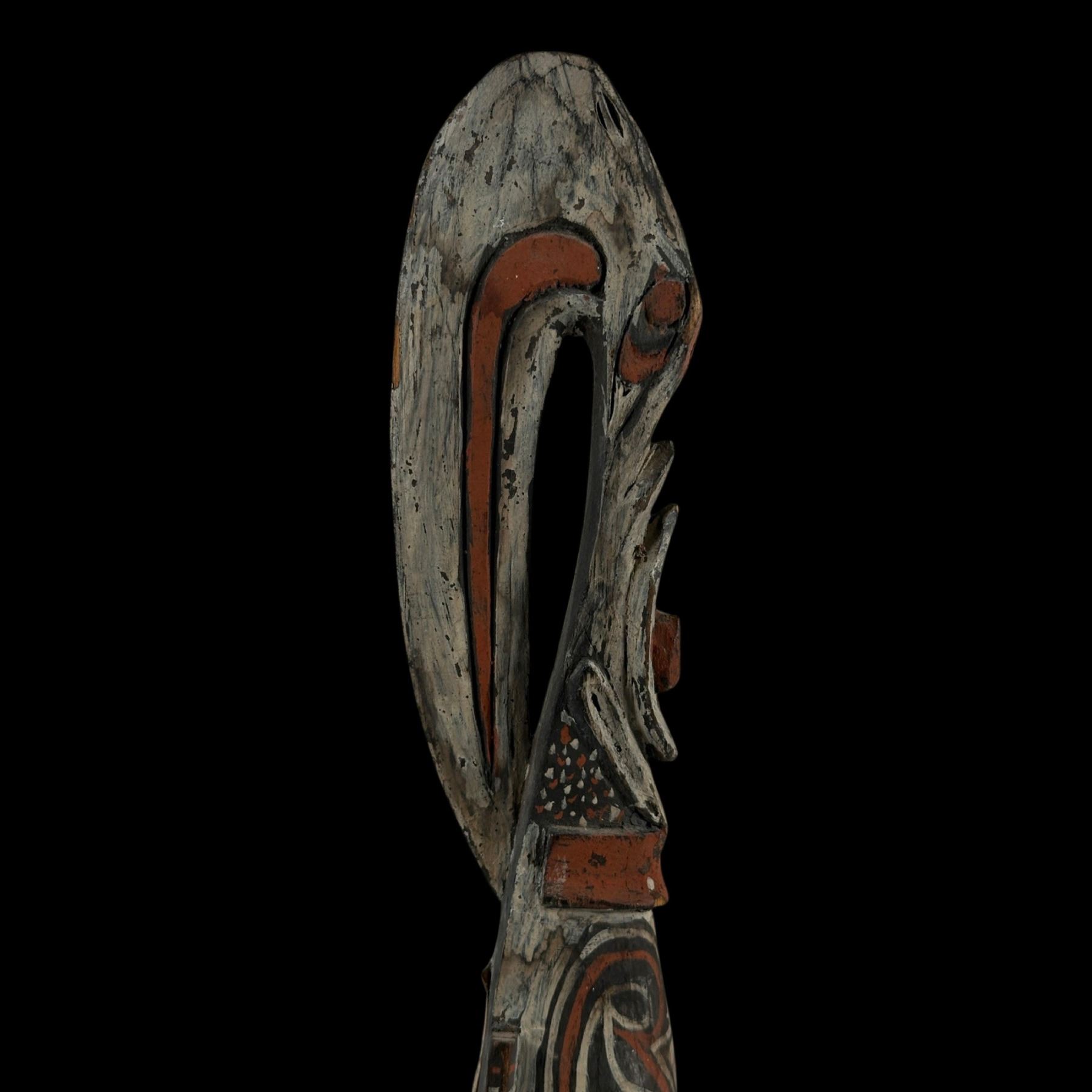 (1940s)* The real deal from the Sepik river. For many years, this graced Sven's den as a fine example of true native craftsmanship. Includes label perhaps from an older museum exhibition. VG+ with typical wear. 2"x14.5"x3".