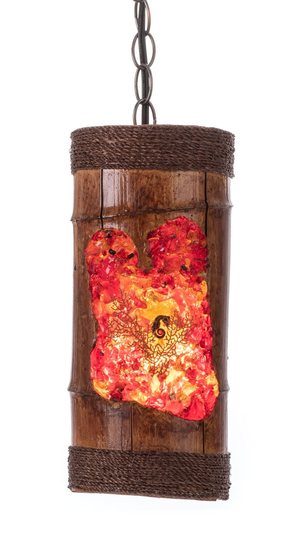 BAMBOO HANGING LAMP WITH RESIN AND CORAL ACCENT by KIARA GELLER.