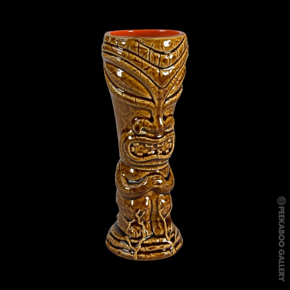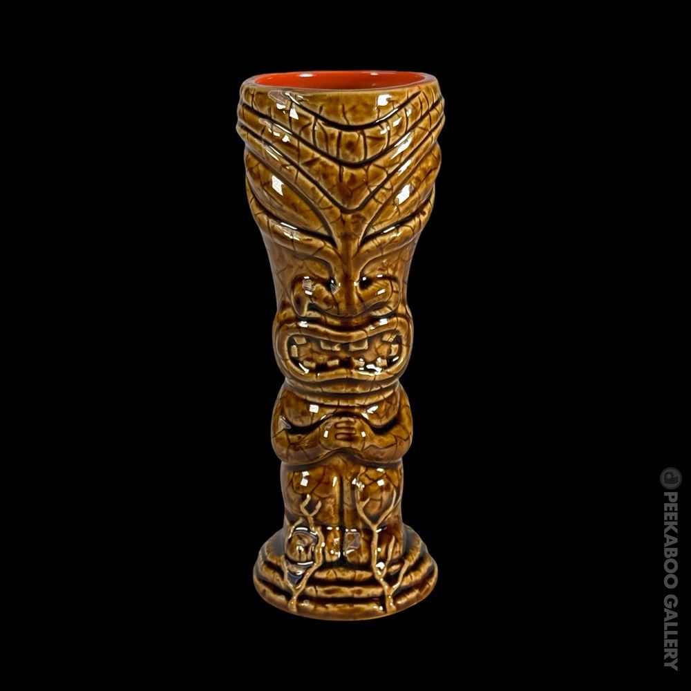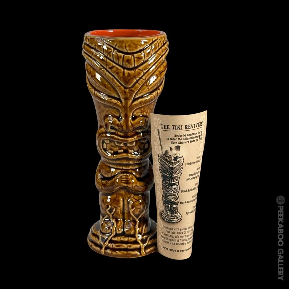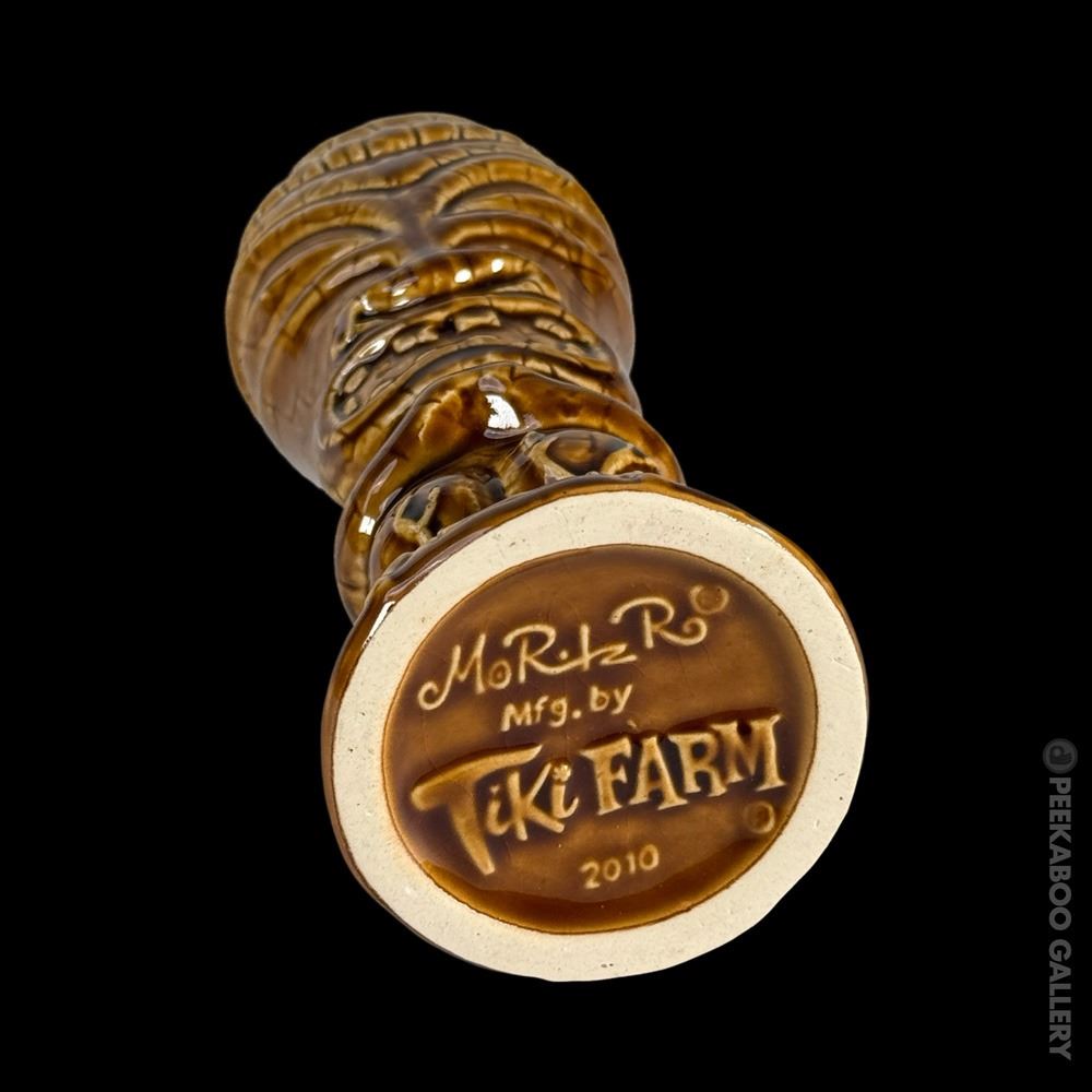 (2010) A rare and highly sought mug by Moritz, the designer of the original Book of TIKI cover who's Tiki this emulates. Produced by Tiki Farm. Comes with orig recipe card. VG+. 7.75"x2.75"dia.