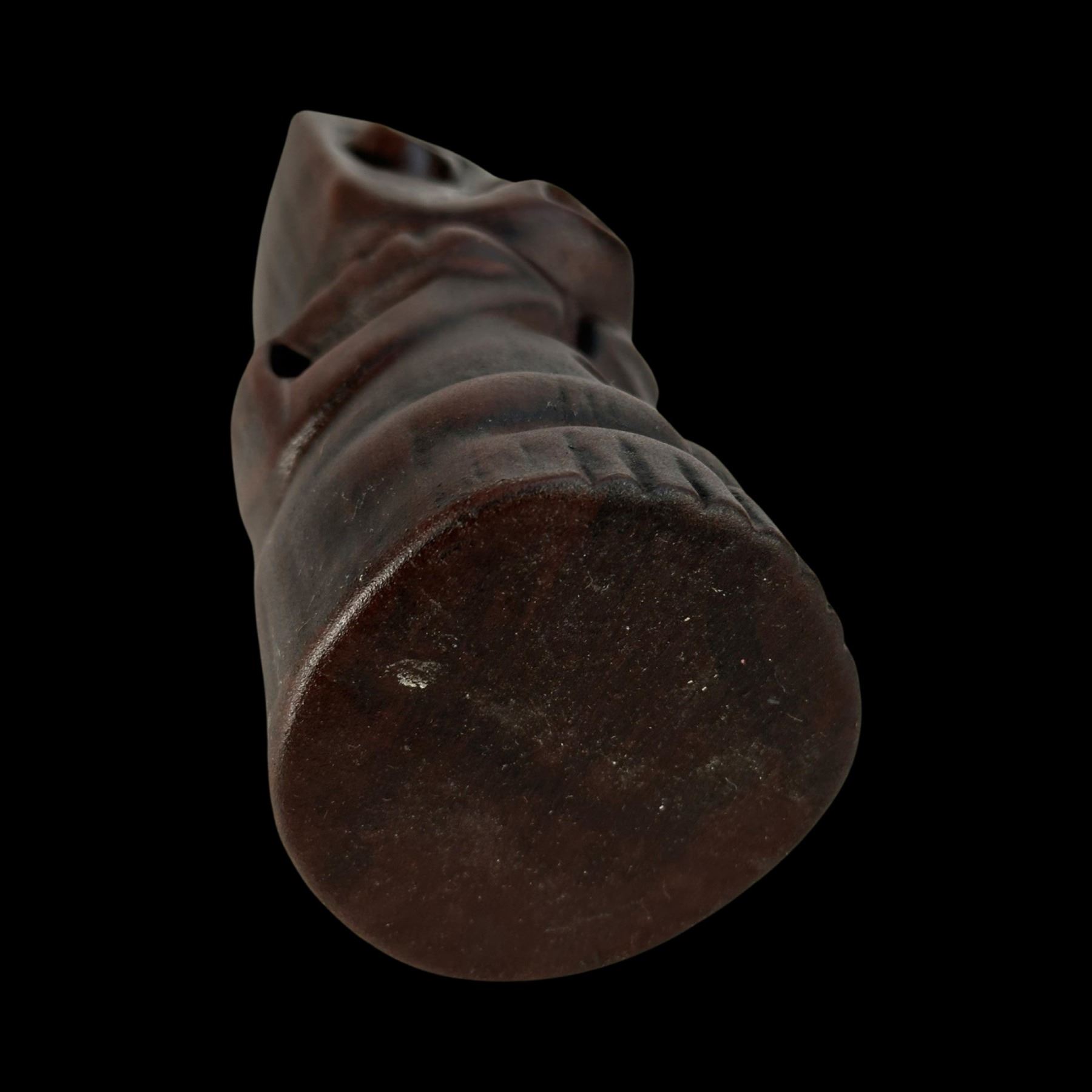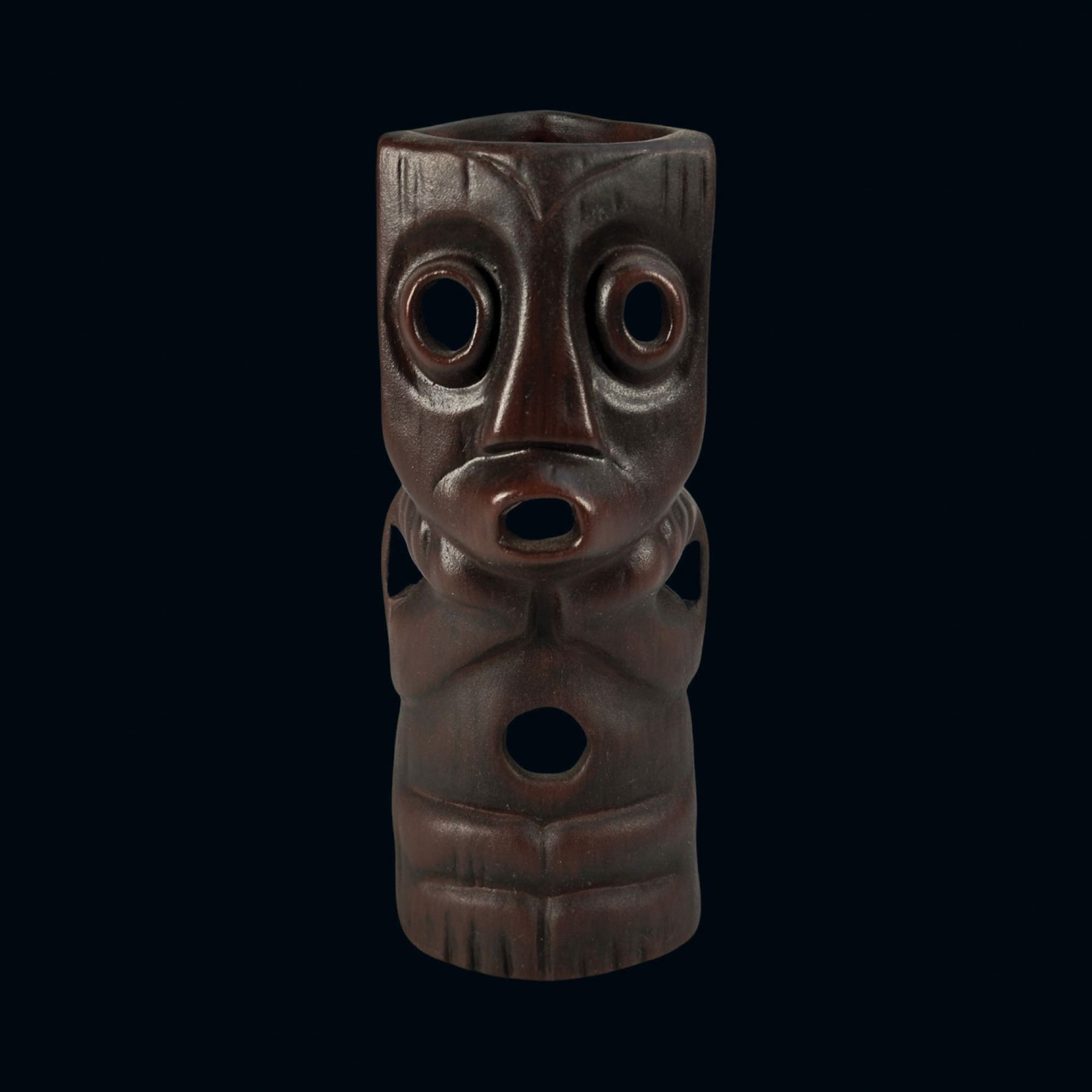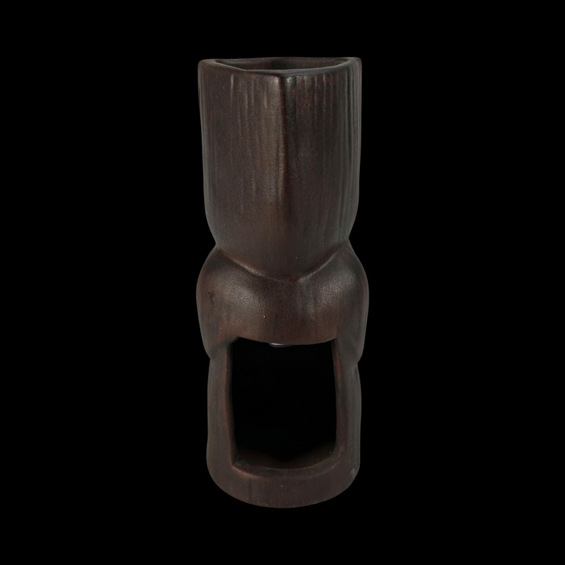 (1950s) A great little Tiki candle lamp holder which lights up in the belly, mouth and eyes when lit. VG+. 2.5"dia x 6.25".