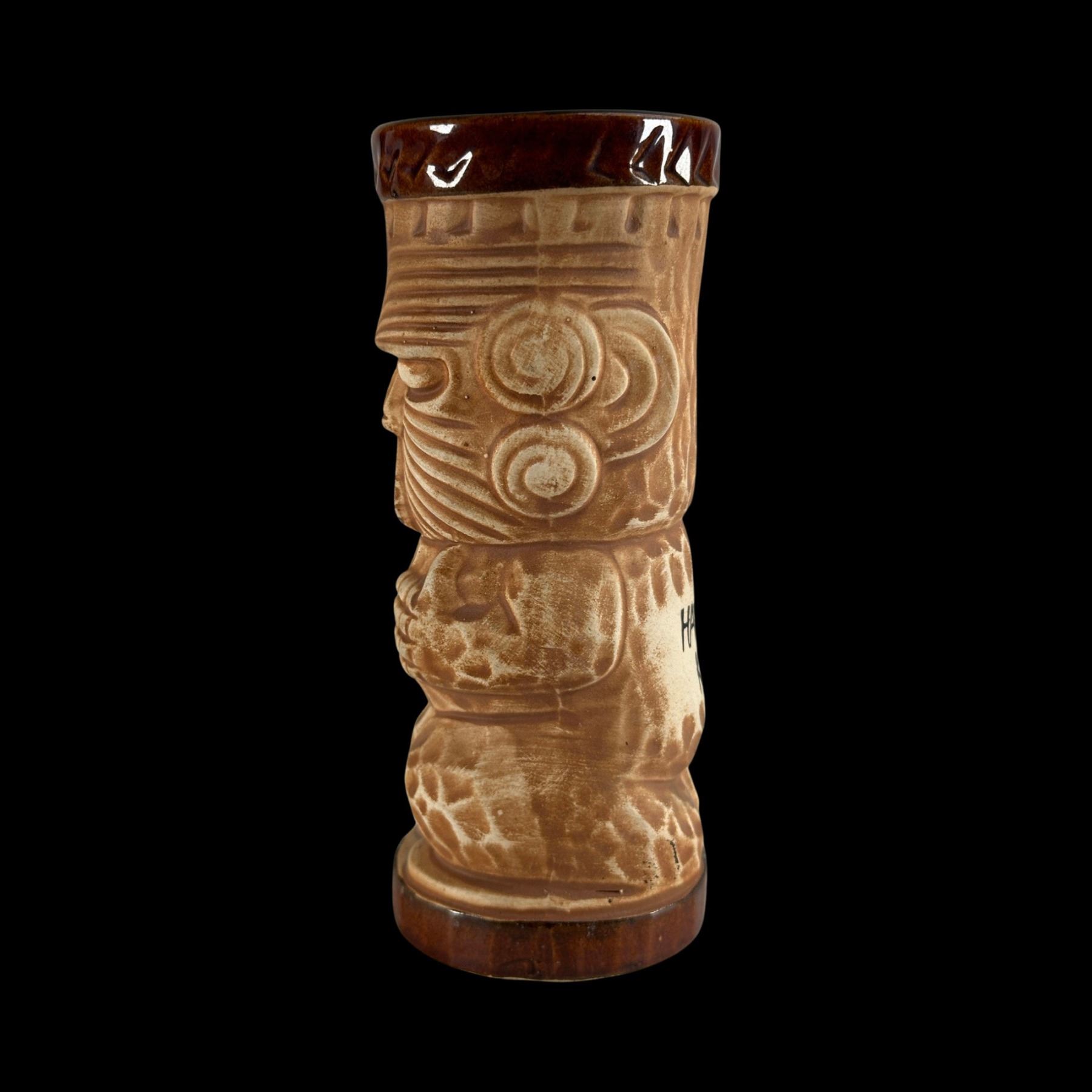 BROWN MAORI  HAWAII KAI  TIKI MUG w/ ORIGINAL OMC STICKER.