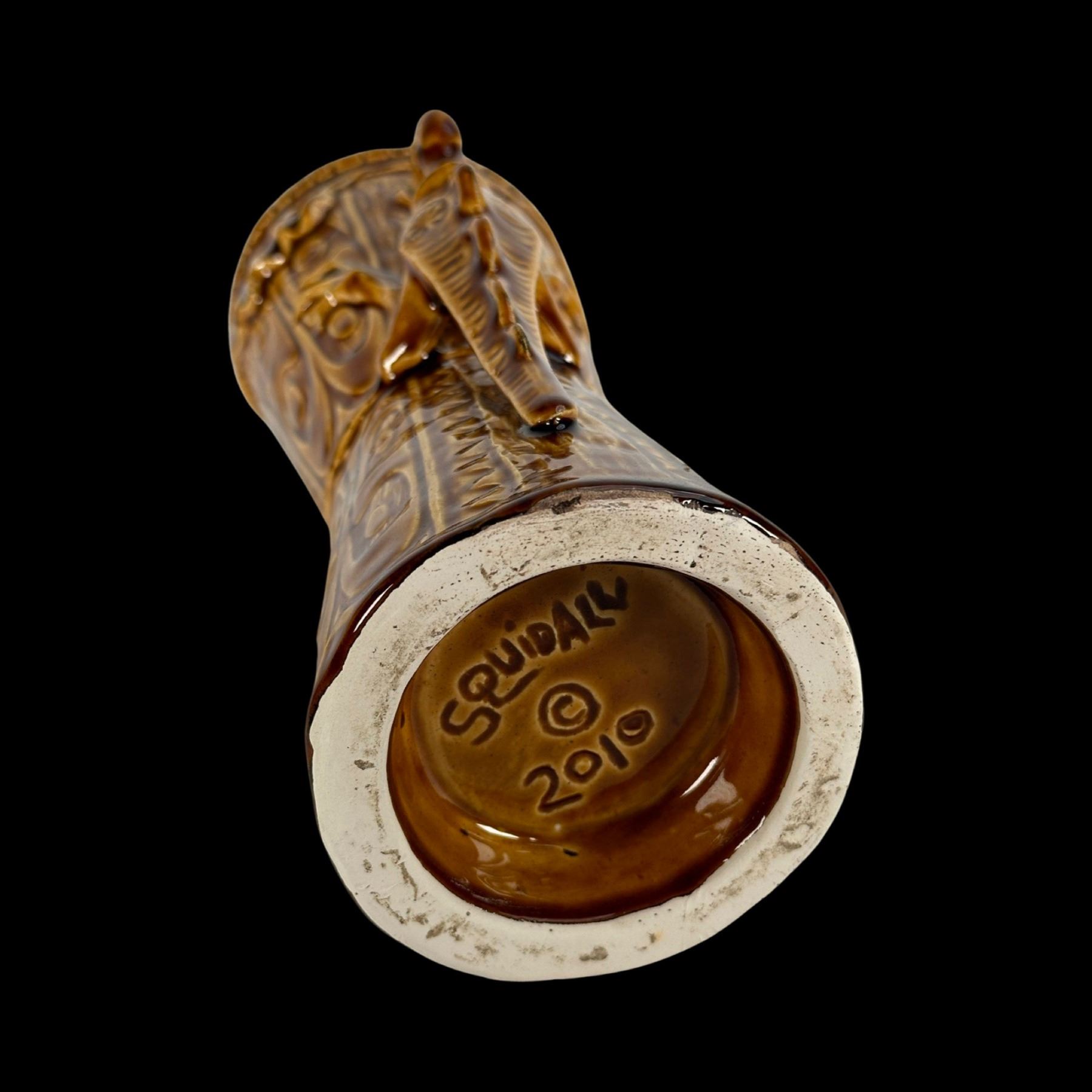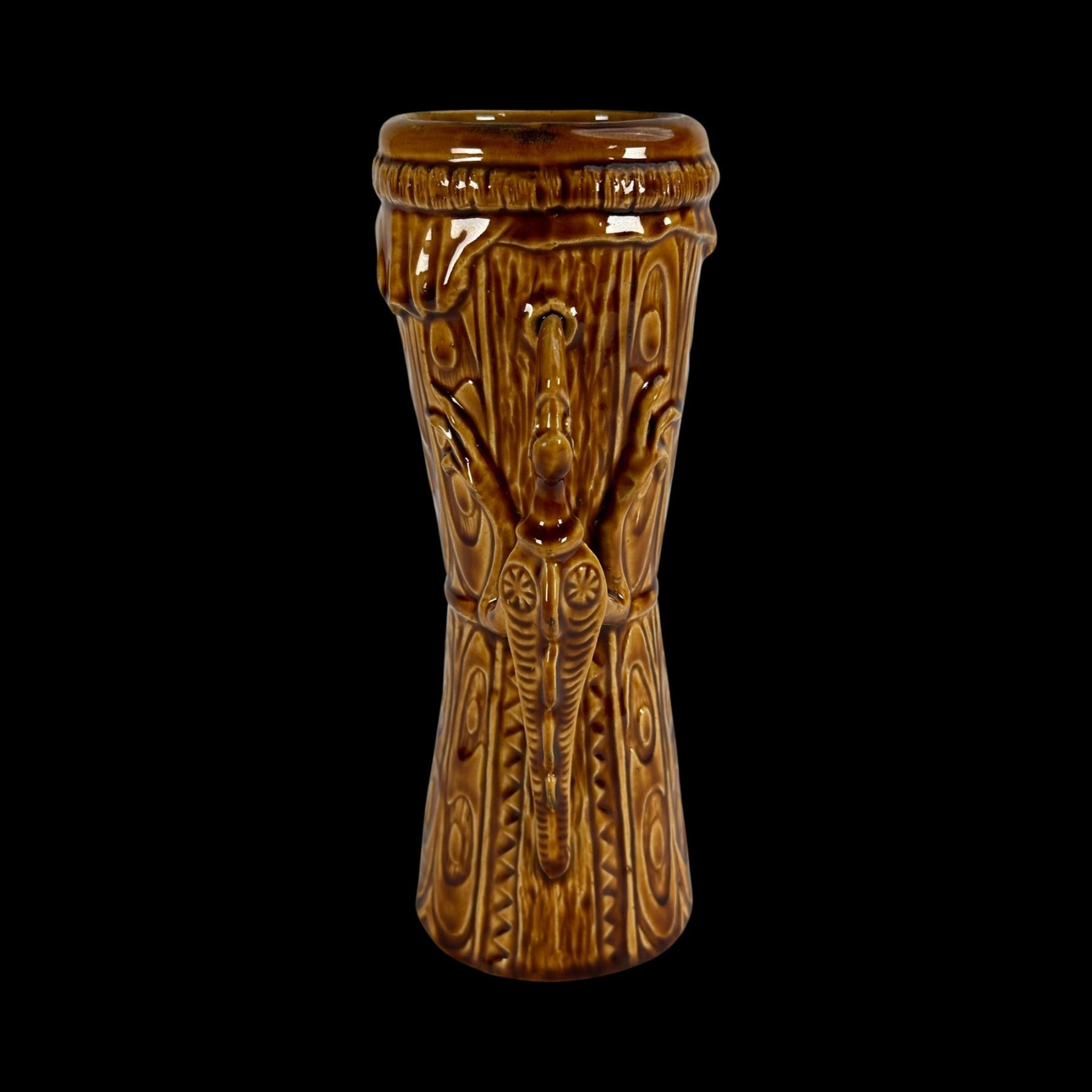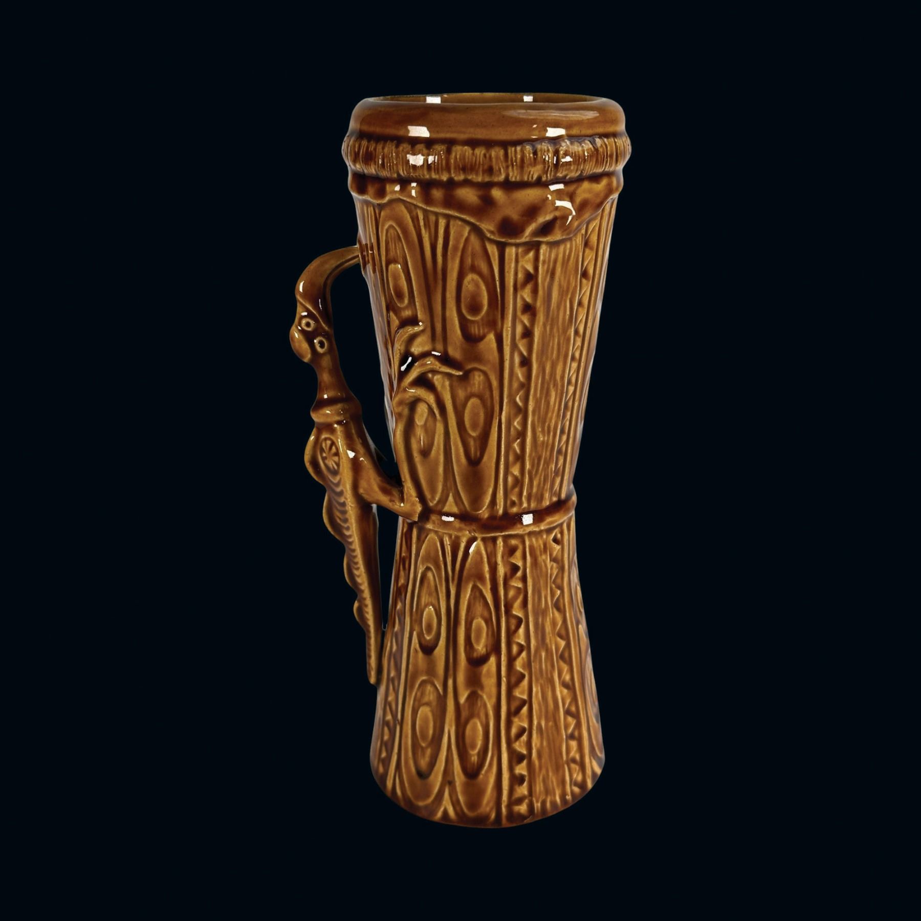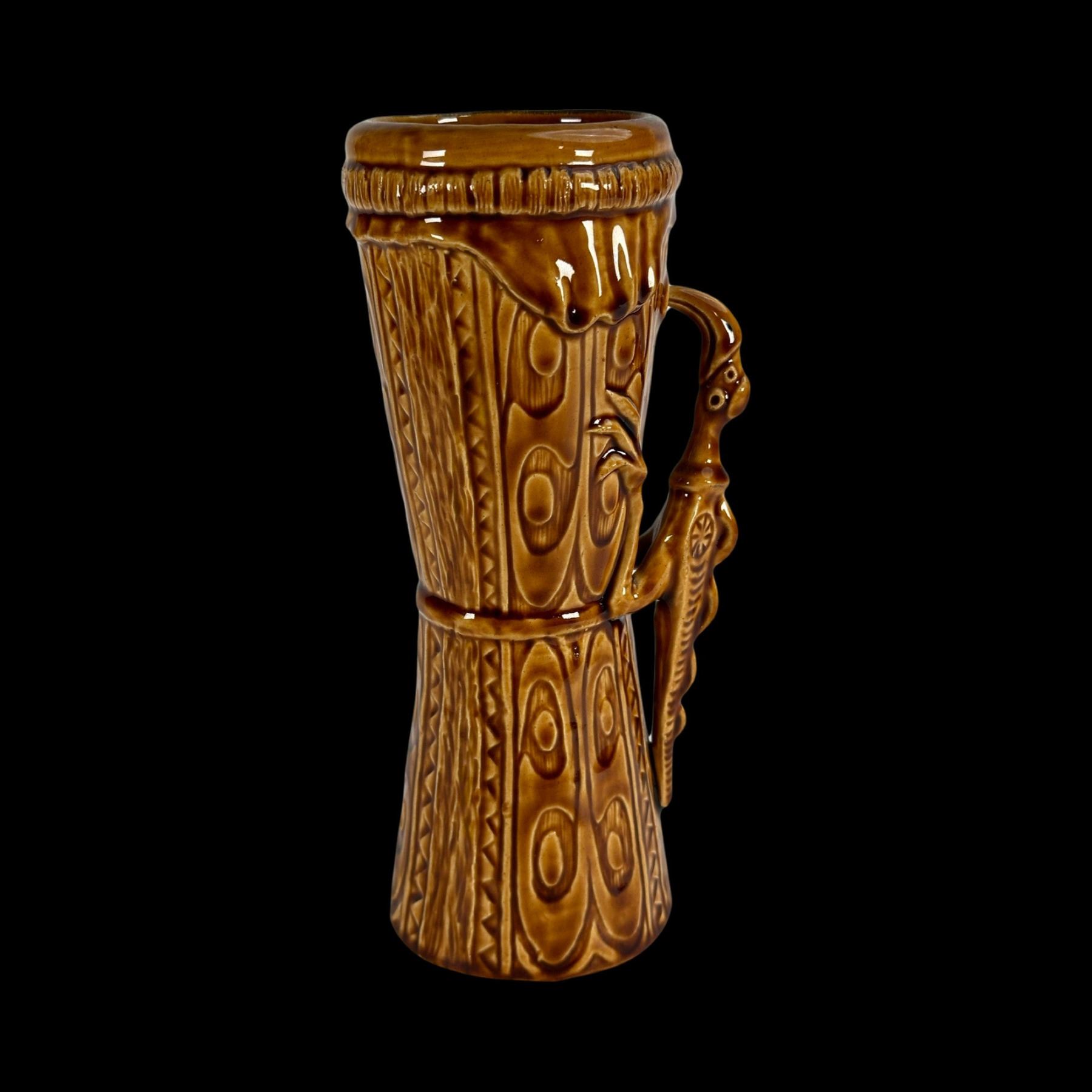 (2010)* A beautiful rendition of a Papua New Guinea ceremonial drum. VG+ with typical wear. 4"dia x 9.5".