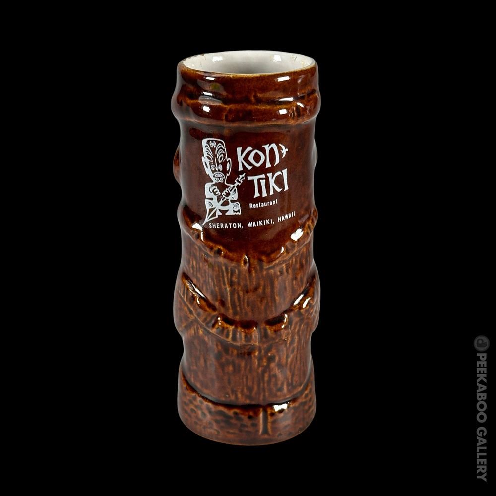 (1960s) A later 60s mug for Steve Crane's Kon Tiki chain. VG+. 7"x2.75"dia.