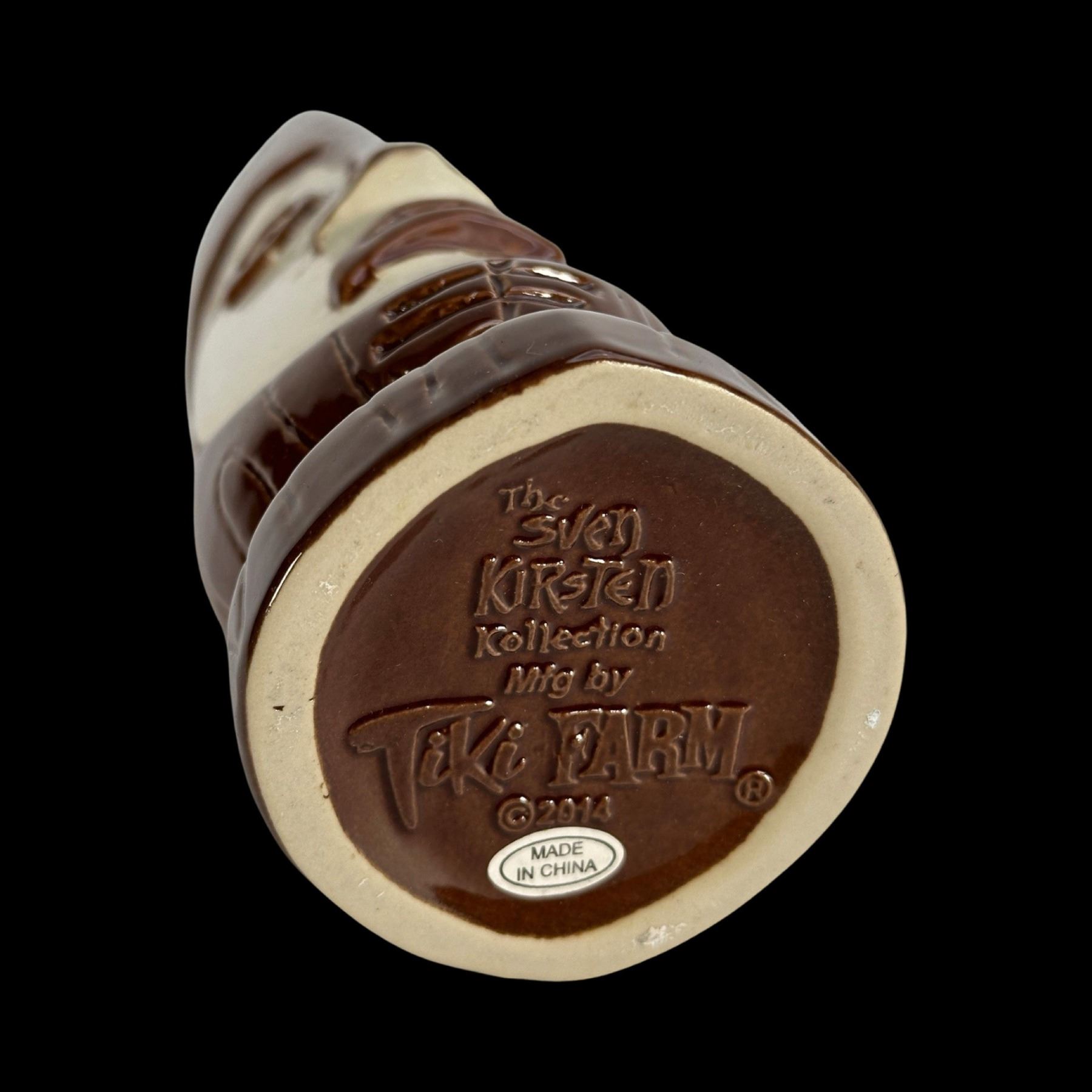(2014)* Designed by Sven Kirsten for the TIKI POP exhibition and book, after a Mai Tai Room menu cover and matching the Cheeky Tiki fully carved logo Tiki in the pop-up bar at the Musee Quai Branly. VG+ with typical wear. 3"dia x 8".
