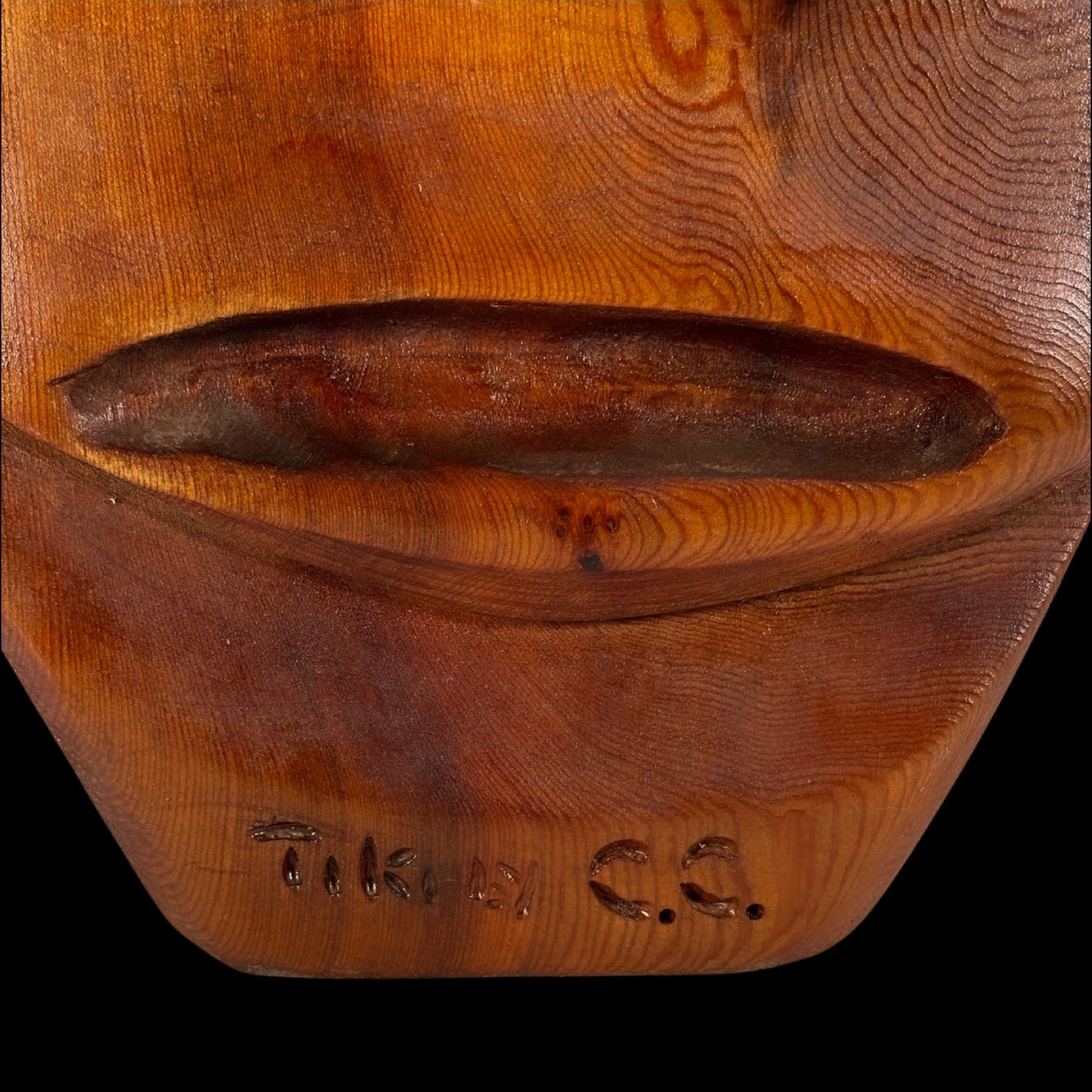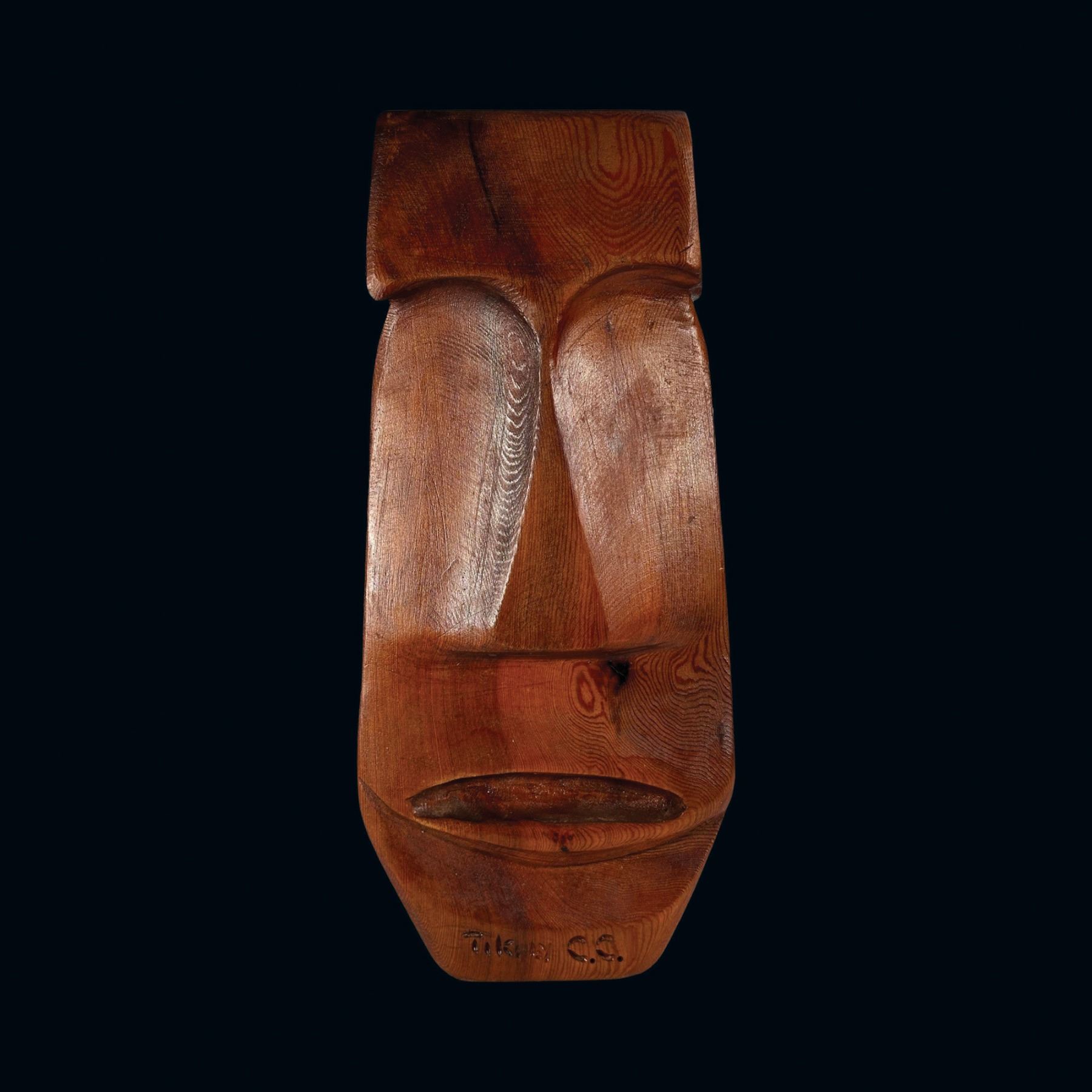 (2000s)* Moai mask by early revival carver C.C. Rider who show-carved at the Tropics hotel. VG+. 8.5"x18.5"x2".