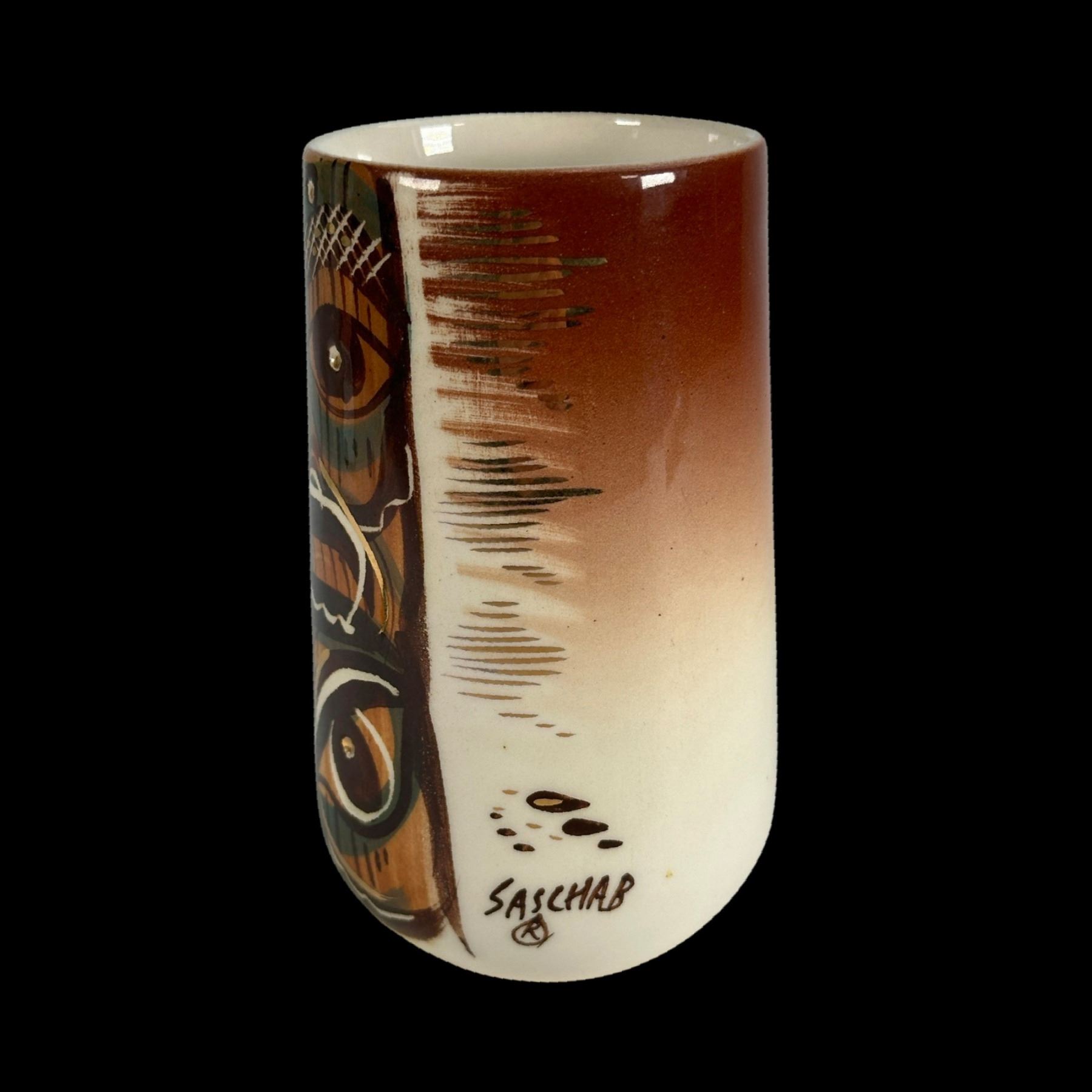 CERAMIC TIKI HANDLED MUG #79 BY SASCHA BRASTOFF.