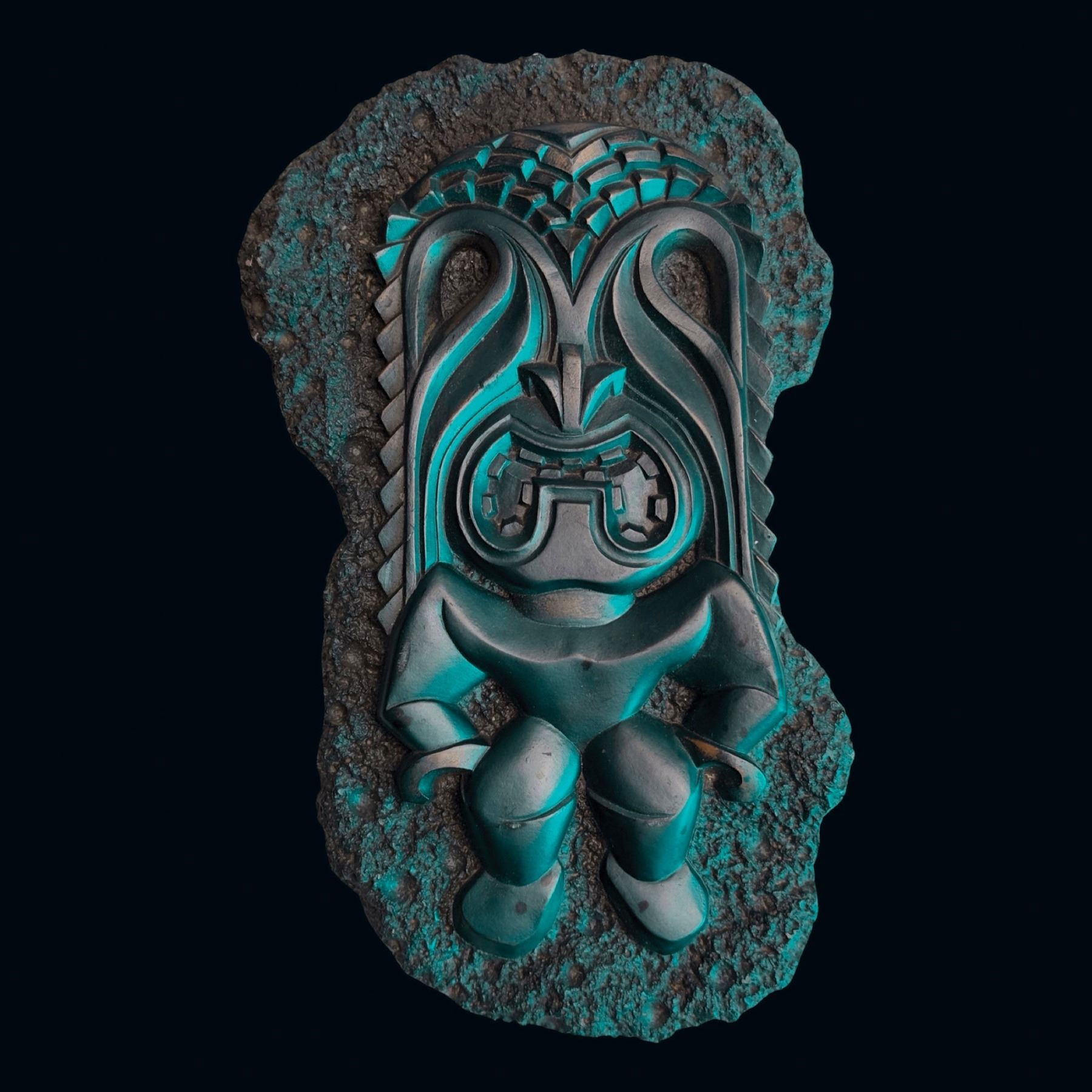 (1960s) The two-dimensional art by Coco Joe's is seen here at its apex in this gorgeous KU, God of War plaque. VG+. 7.25"x12".