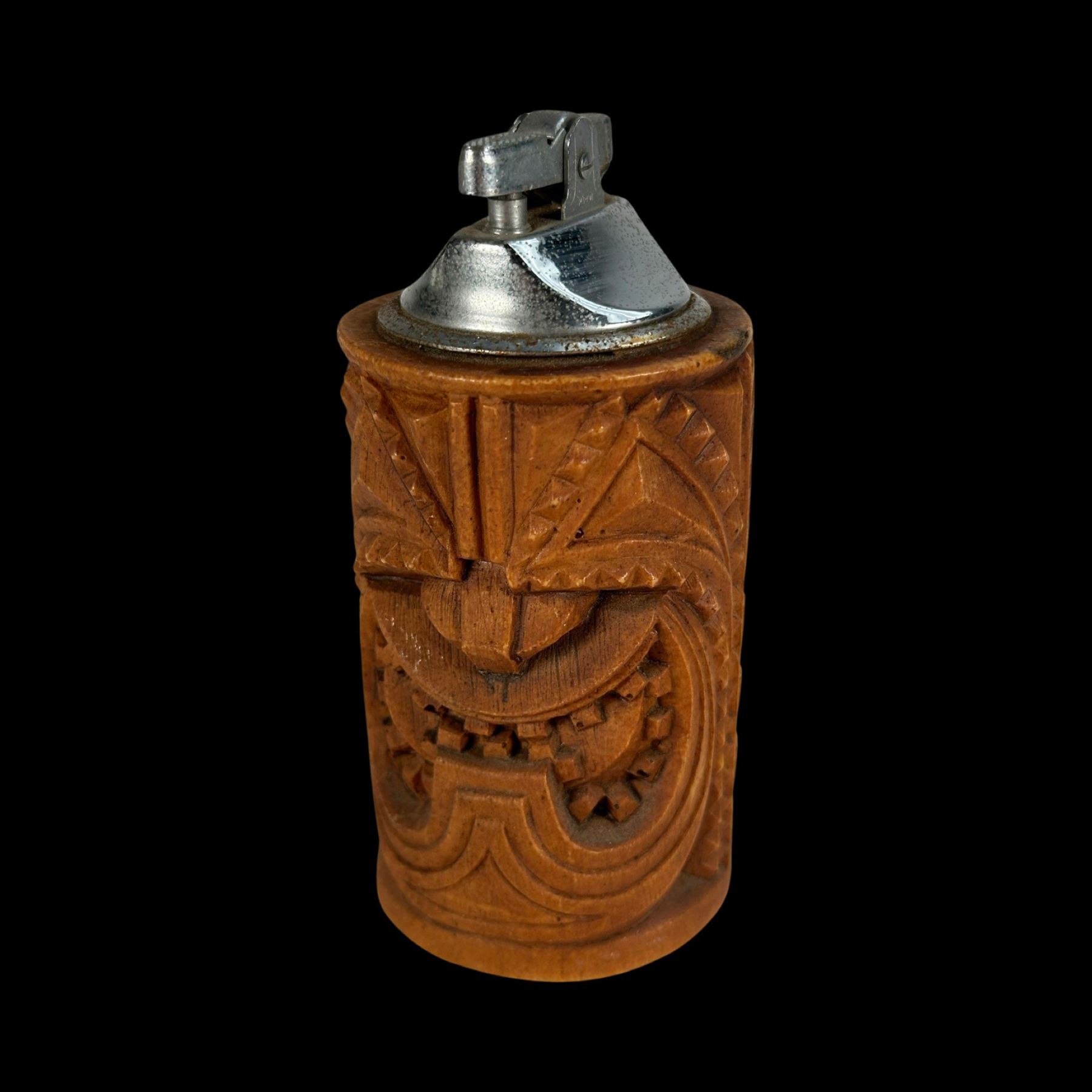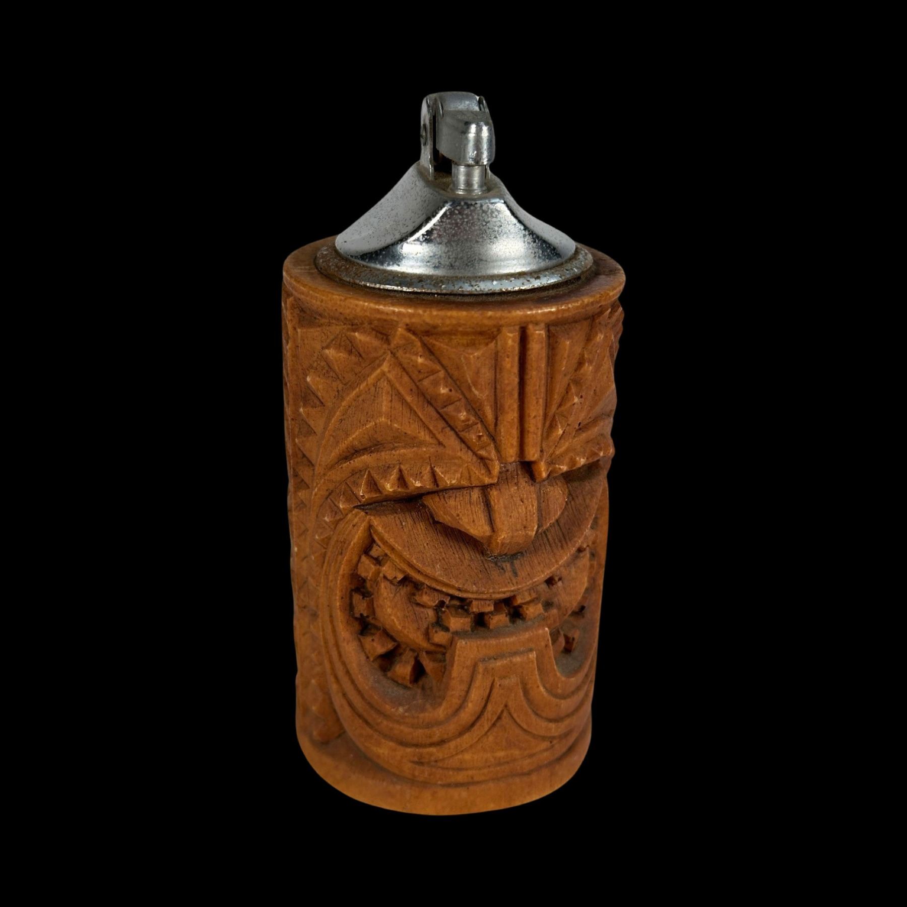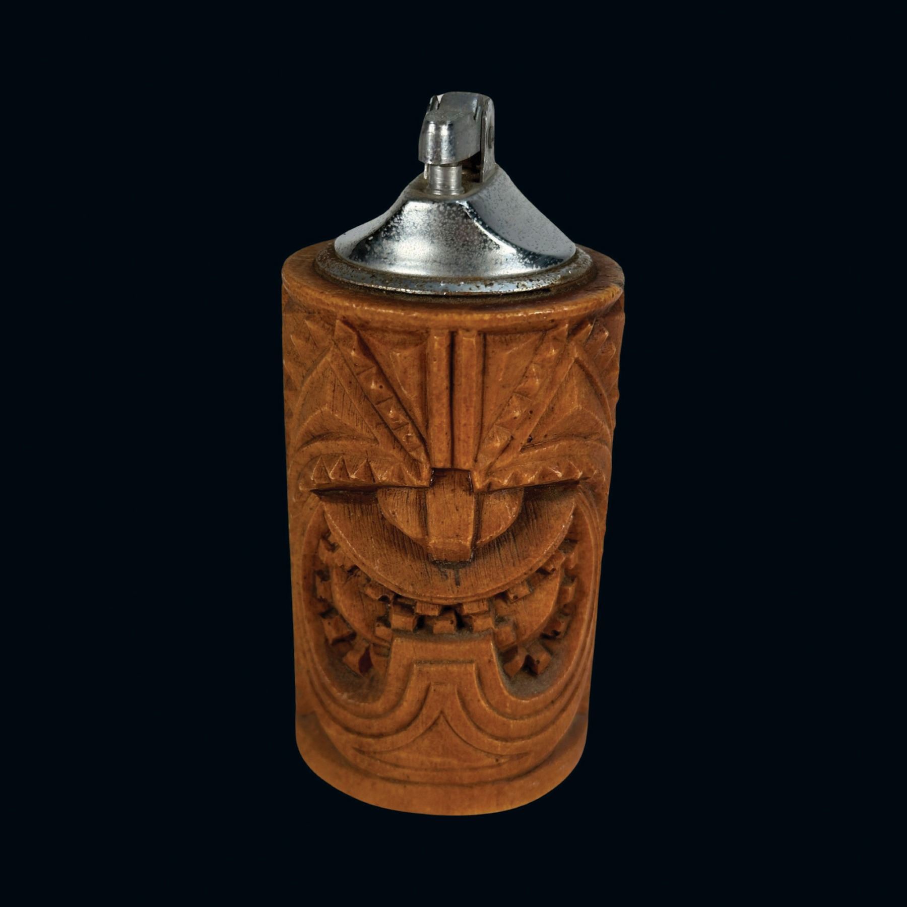 (1960s)* Resin cast Coco Joe's Tiki table lighter. VG+ with minor wear. Not tested. 2.25"dia x 4.75".