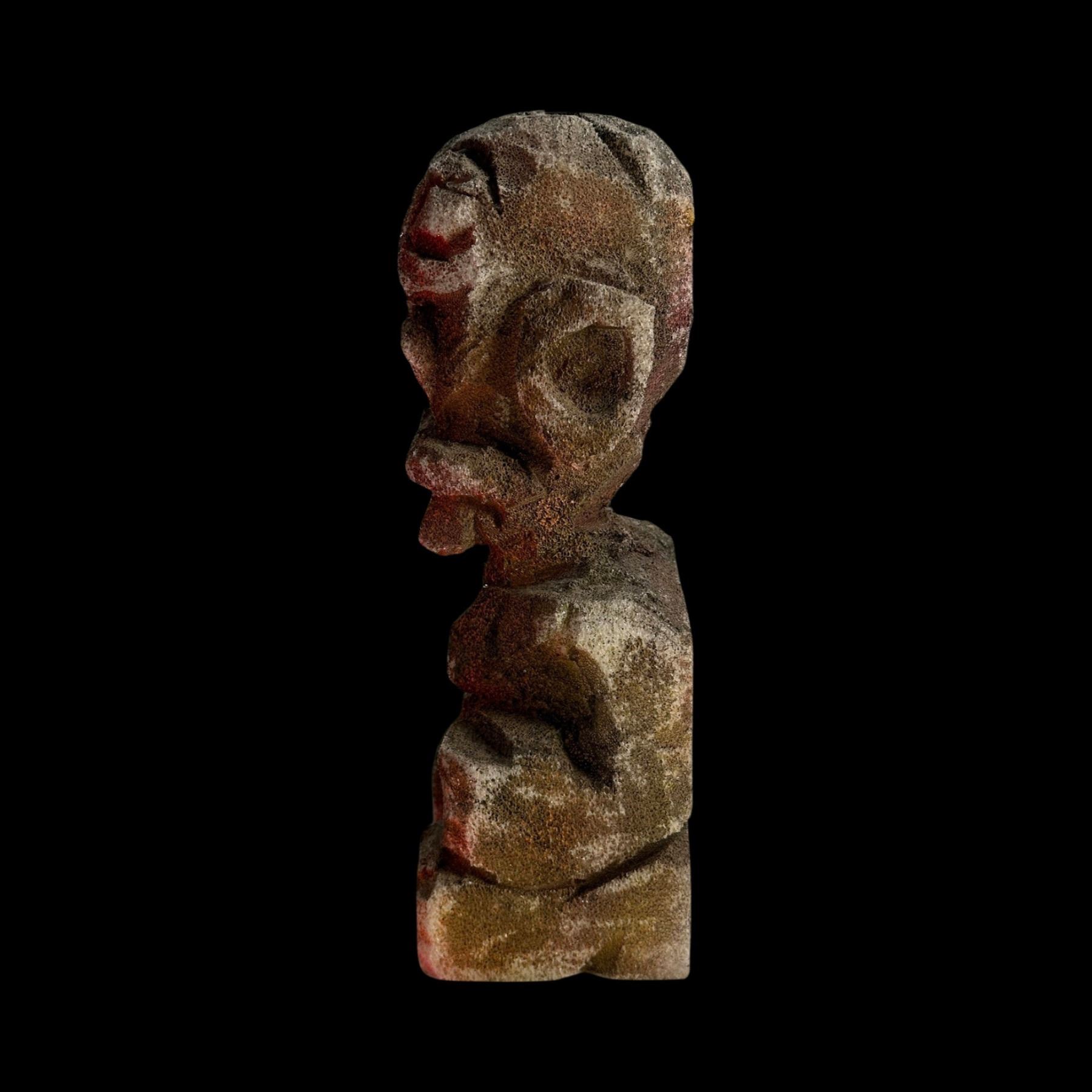 (1990s)* Prop Tiki used by Combustible Edison for their early 90s "The Tiki Wonder Hour" stage show, given to Sven by the Millionaire. Published in TIKI POP page 371. VG+ with rubbing to surface paint. 6.25"x12.5"x4".