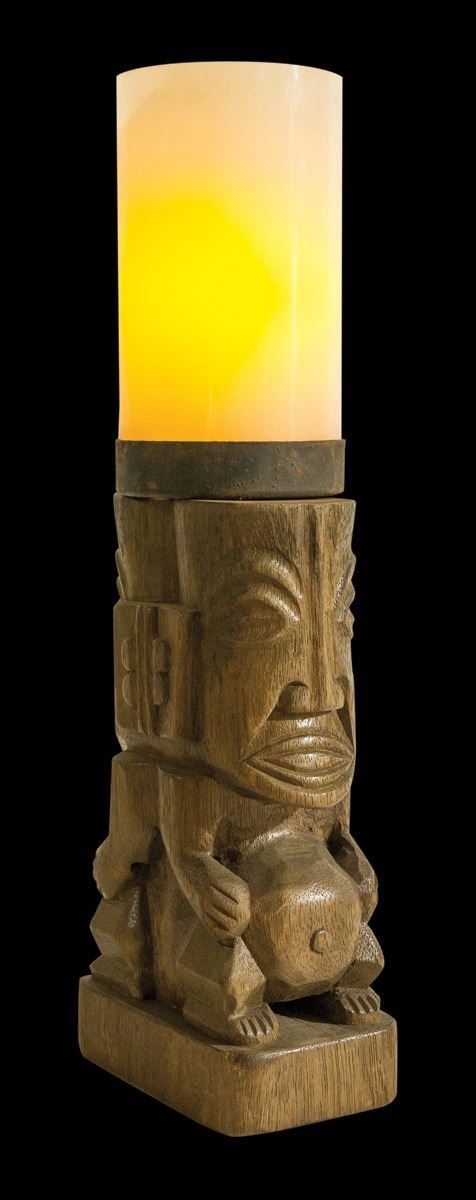 (1960s) This handsome back to back tiki god lamp was custom manufactured for Johnny Quang's TIKI HUT in Salt Lake City, Utah. Very rare.13.5"x4.5"VG+