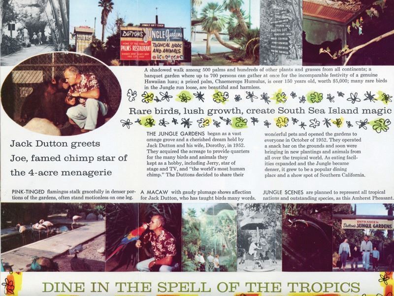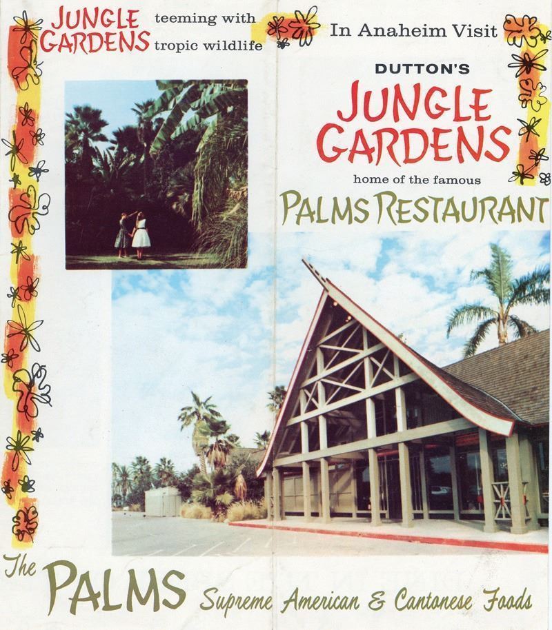 (1960s) Dutton's Jungle Gardens was a pre-Disneyland Anaheim themed attraction. It was here that the PALMS restaurant and Bar of 1000 Lamps was located, one time home of Ray Buhen.9x4 closed.VG+.