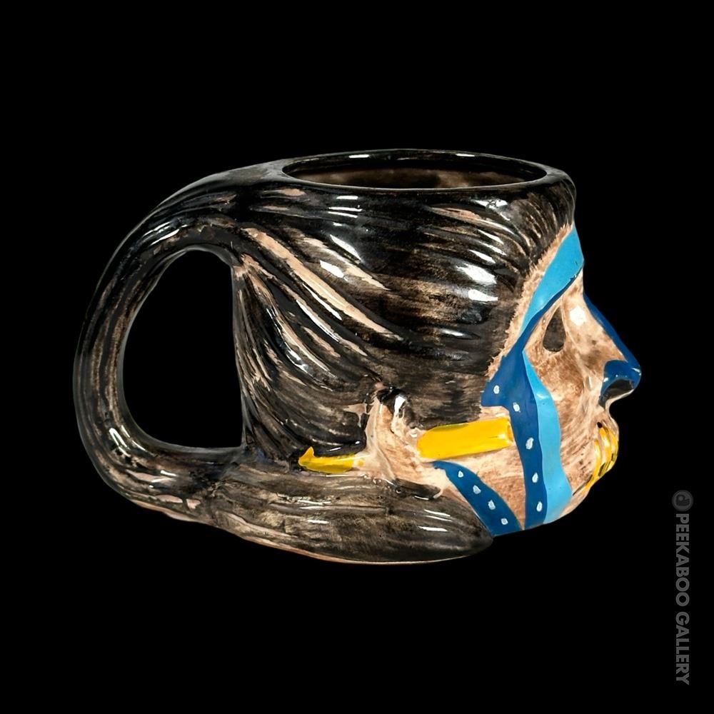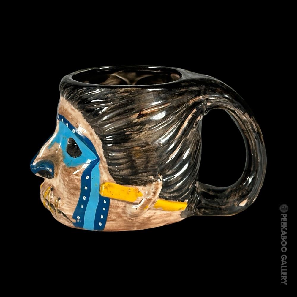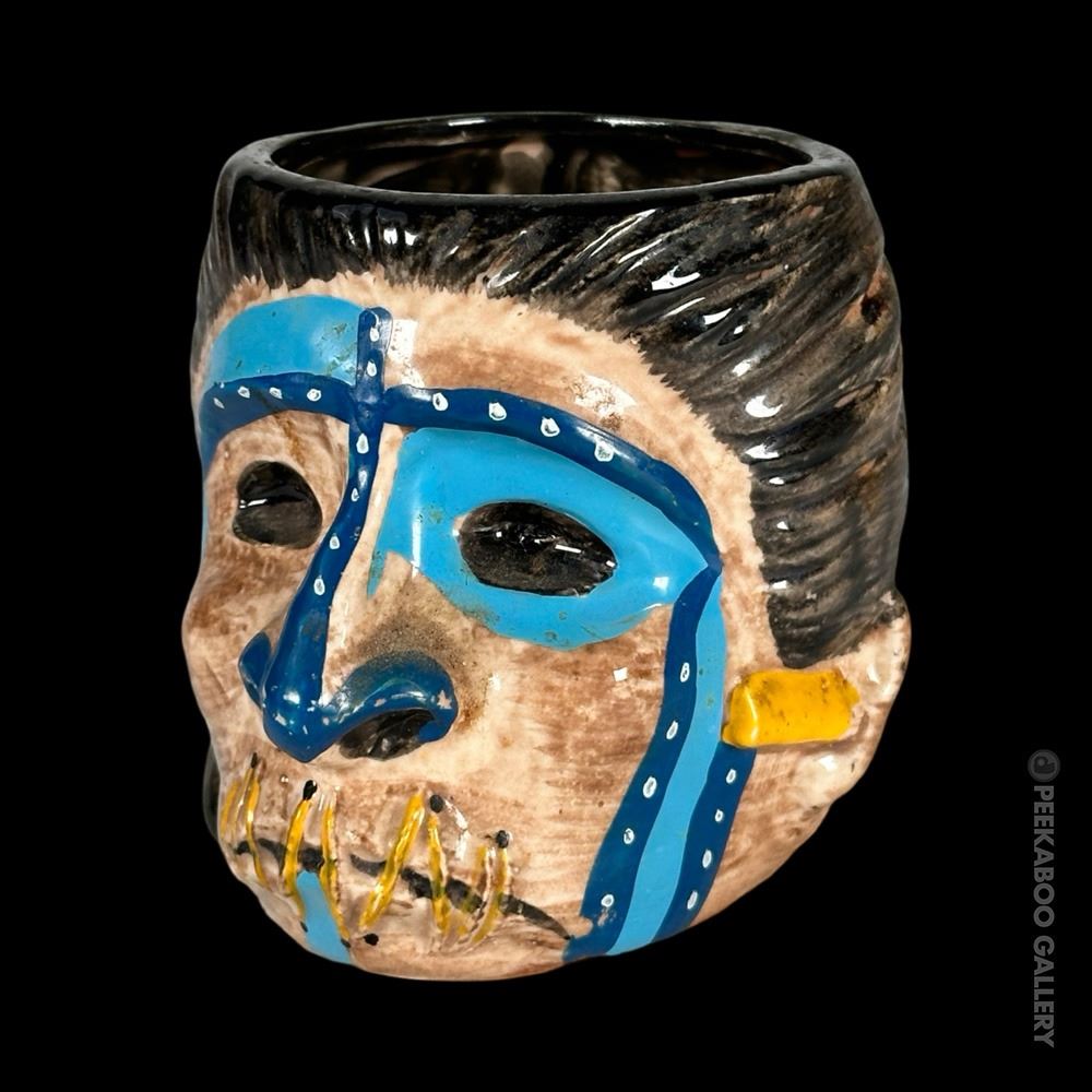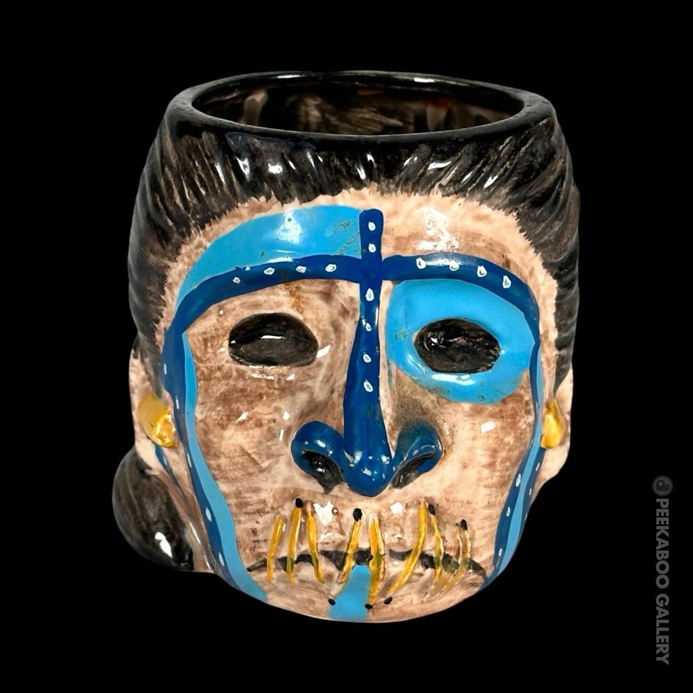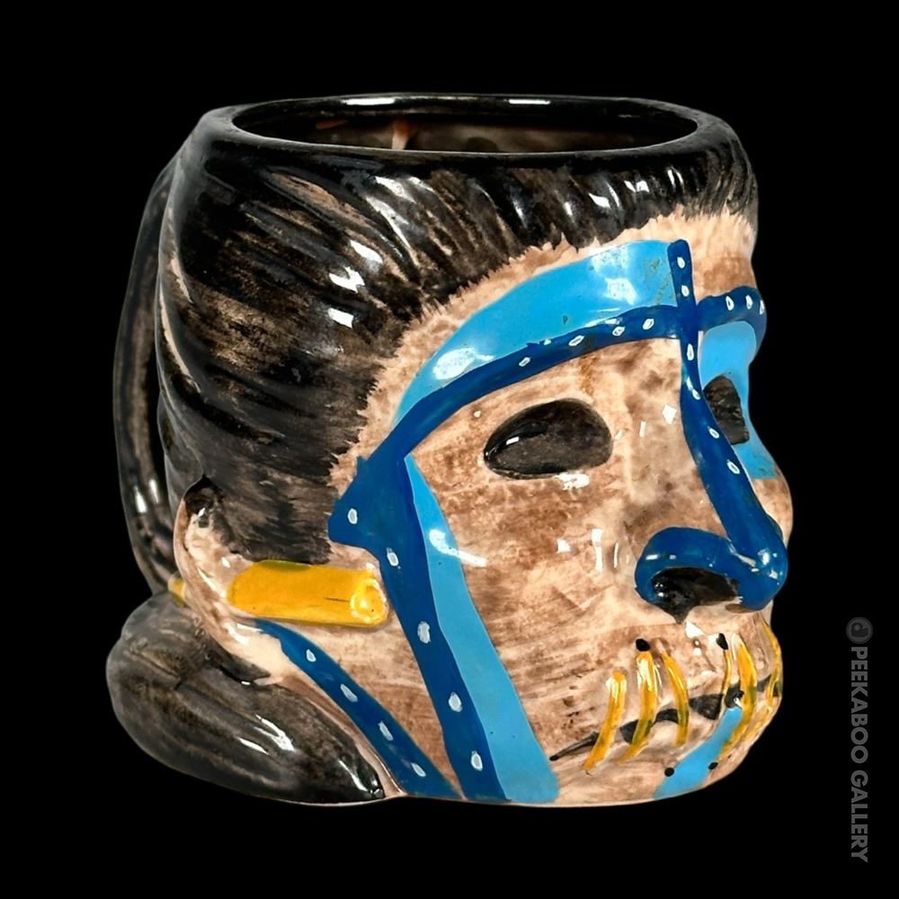EARLY MAI-KAI "SHRUNKEN HEAD" HANDLED TIKI MUG w/ ORIG OMC STICKER.