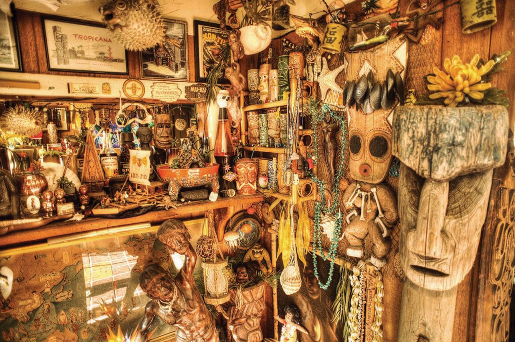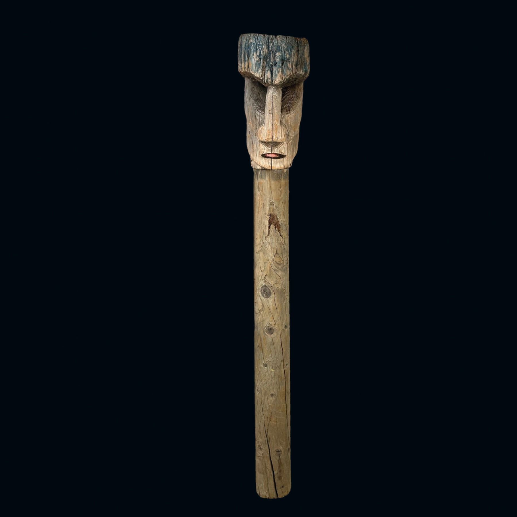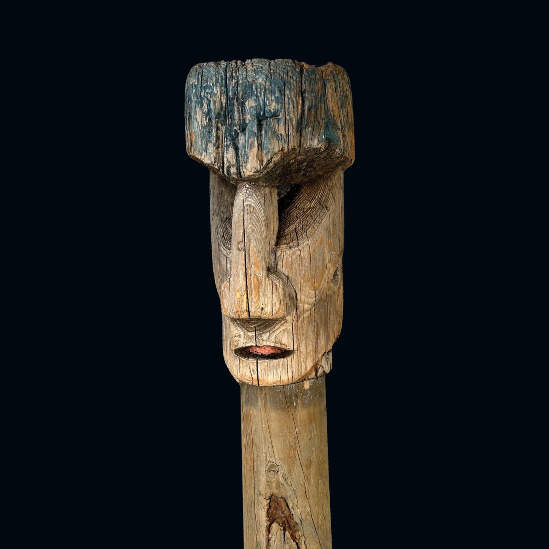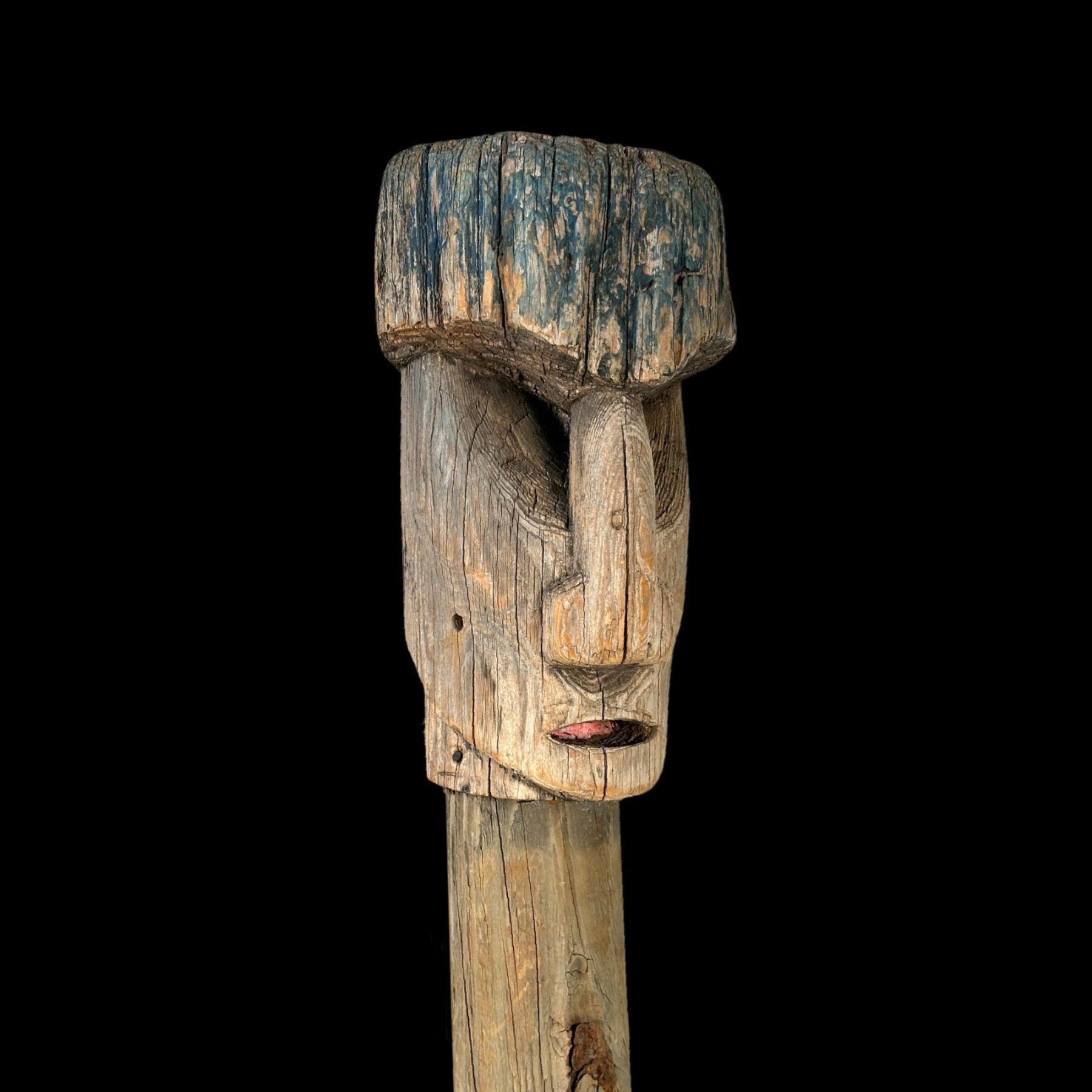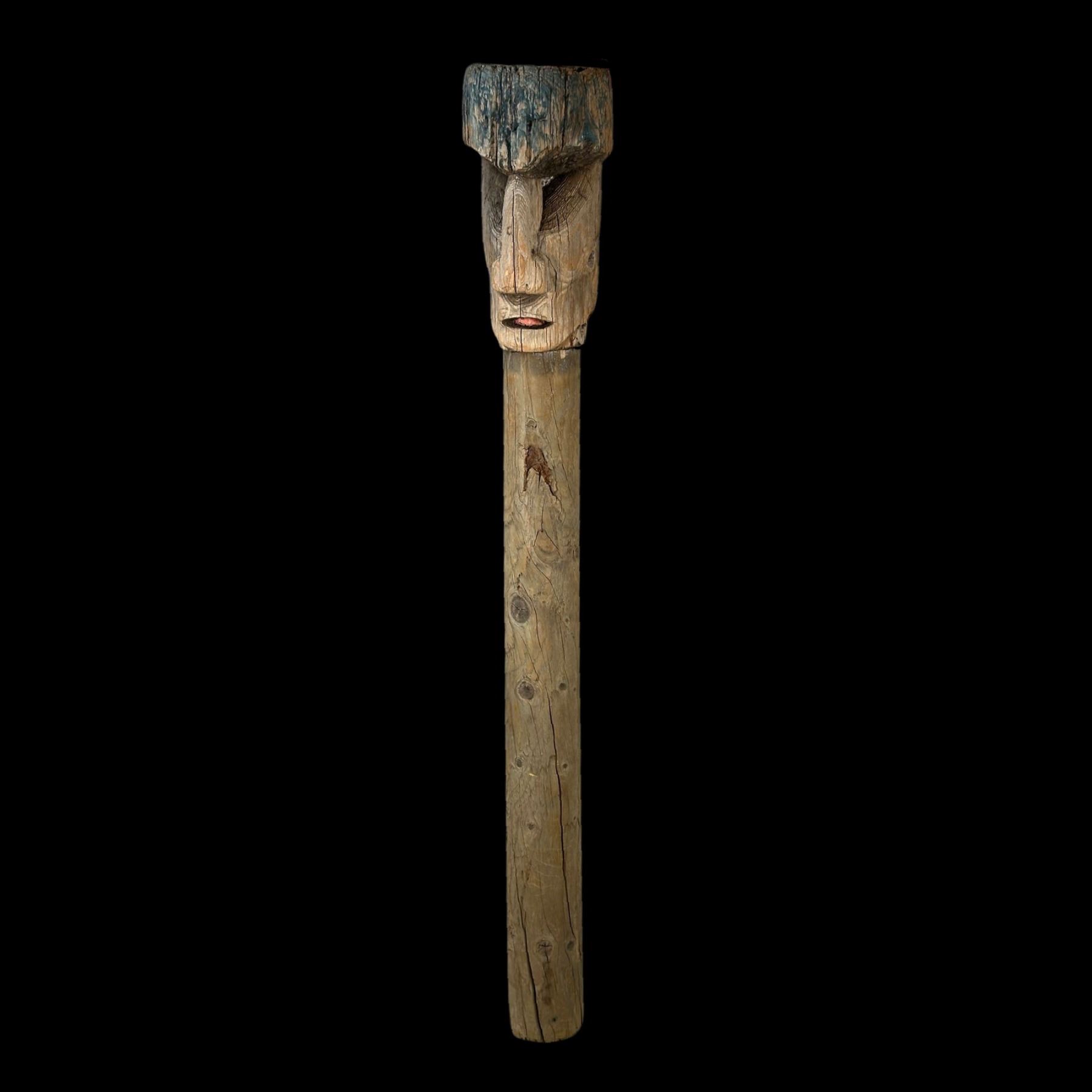 (1950s)* Unknown origin. Found in vintage store in Burbank on one of Sven's early Tiki hunts in the field. VG+ with surface wear from exposure and loose attachment to the post. Can be fortified. 9.5"dia x 66".