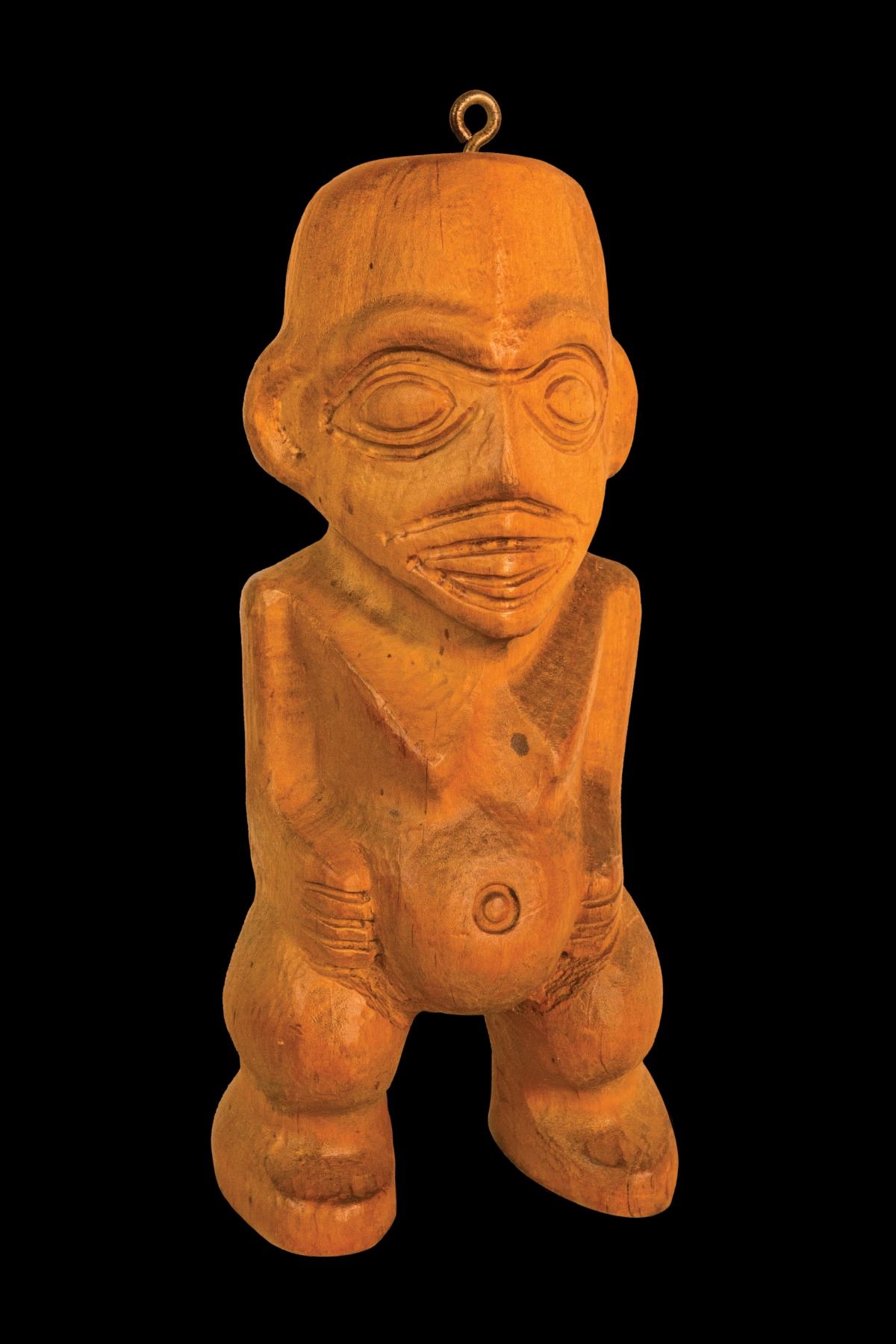(1950s) An early version of the OA Rarotonga, Cook Island Fisherman's God Tiki master pattern carving. This pattern was only used for a year or so in the late 1950s. 10.5"x5"x4". VG+ with typical wear.