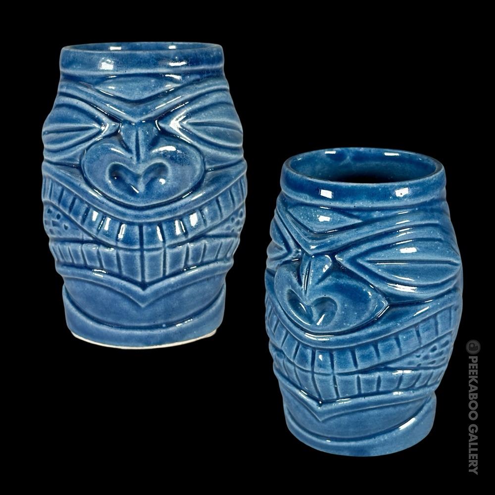 (2001) These large-mask tiki mugs were designed for Tiki Farm by Jimmy C. Early Tiki Farm editions. VG+ with typical wear. 4.75"x3.25"dia each.