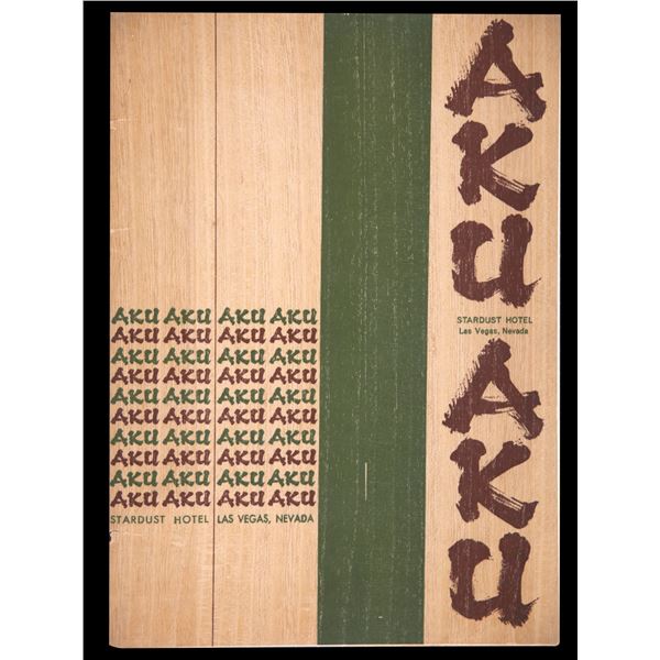 (1960s)* Full restaurant menu for the Las Vegas, NV restaurant inside the late Stardust Hotel. VG+ with light creasing and partial split in binding. 7