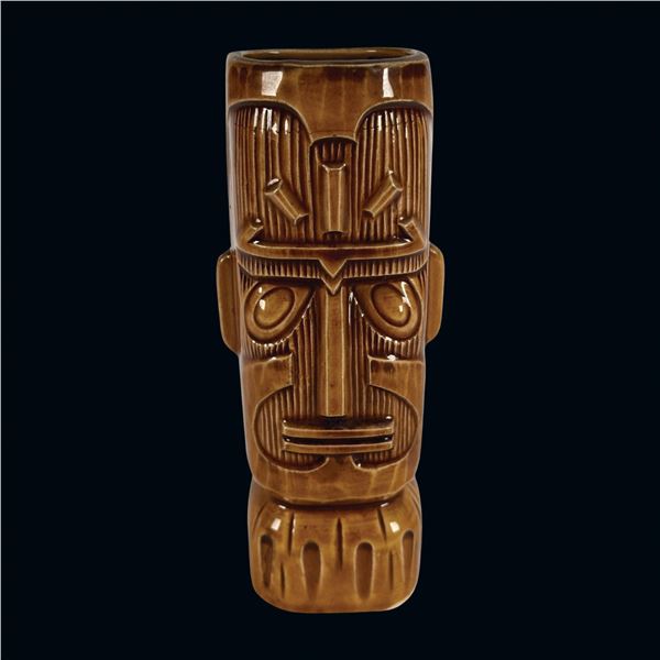 (1960s) An unmarked large Moai Tiki mug, most probably produced by Beauce Pottery. VG+ with typical wear. 4"dia x 7".