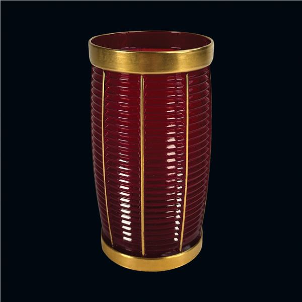 (1950s) Designed by Florian Gabriel and produced by HF Pottery. VG+ with typical wear and hairline stress cracks interior. 6.5"dia x 5.75".