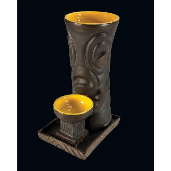TIKI DIABLO WITCO "TROPICAL MACUMBA!" TIKI MUG w/ TAG, SHOT GLASS, & TRAY.904 - TIKI DIABLO WITCO "TROPICAL MACUMBA!" TIKI MUG w/ TAG, SHOT GLASS, & TRAY.