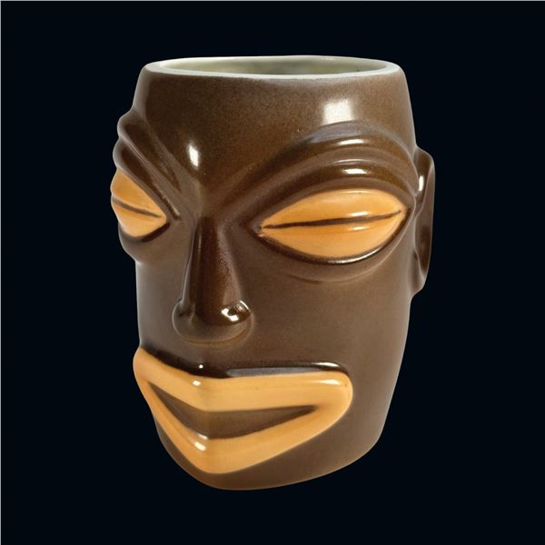 SPANISH BROWN & ORANGE PORCELAIN TIKI MUG.775 - SPANISH BROWN & ORANGE PORCELAIN TIKI MUG.