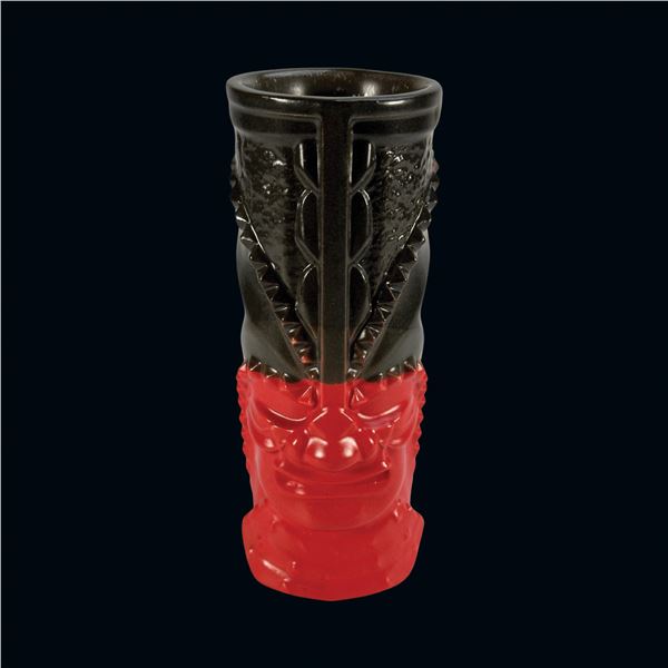 BLACK & RED "KAHUNA TIKI" GLAZE SAMPLE ONE-OFF MUG FROM SVEN KIRSTEN KOLLECTION.795 - BLACK & RED "KAHUNA TIKI" GLAZE SAMPLE ONE-OFF MUG FROM SVEN KIRSTEN KOLLECTION.