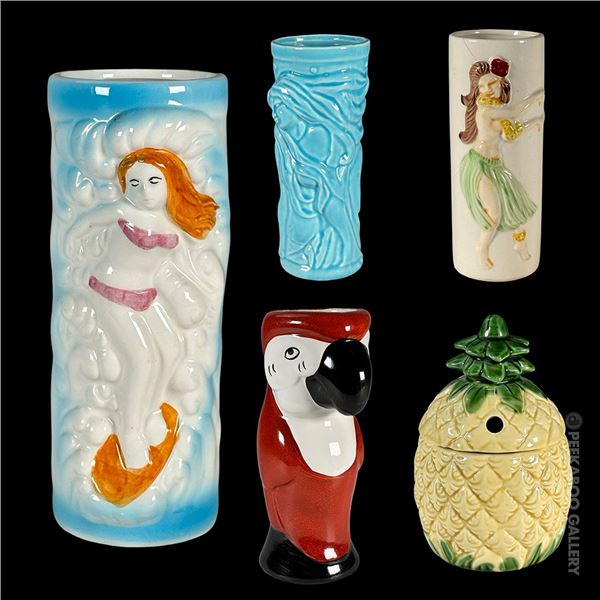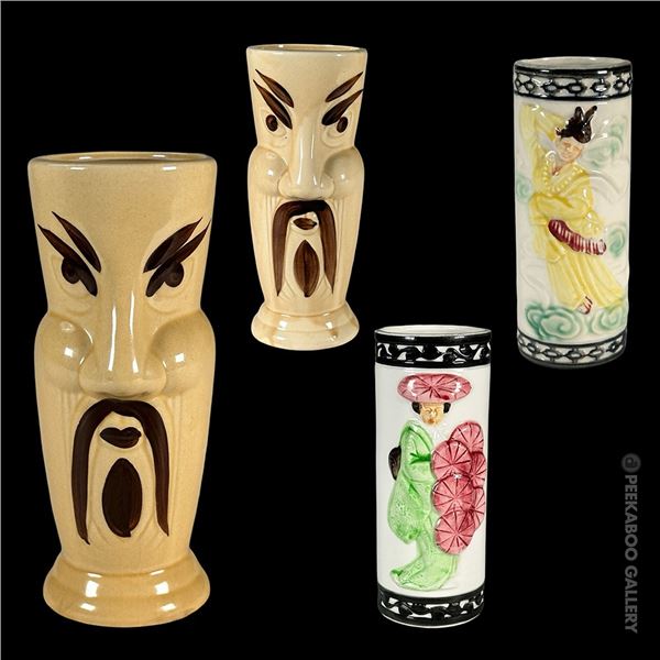 A joyous selection crossing the whole genre and eras of TIKI MUG collecting! Everything from early "Tropics" era drinking vessels to rare limited edition mugs of the Revival era. OMC, Spurlin, Desert Ceramics, Munktiki, Tiki Diablo, Tiki Farm, and more! All this in an online only auction with LIVE PODCAST commentary from author, Jordan Reichek's FABULOUS BOOZE CAVE home bar! JOIN US!