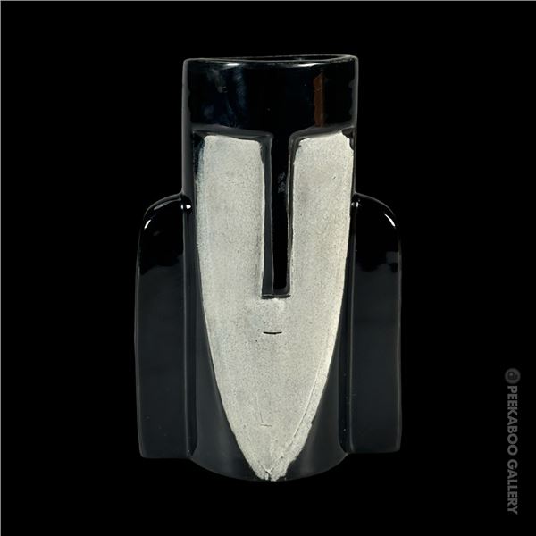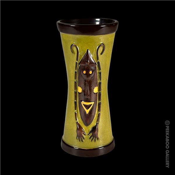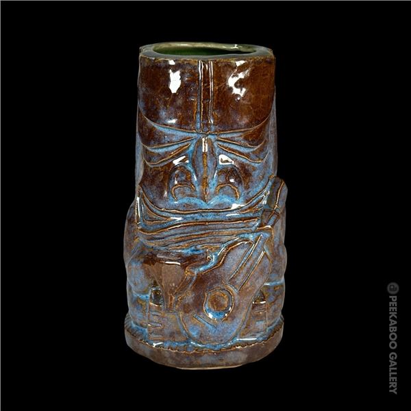 (2000s) Since the 1970s Will Herrera has been designing Island-inspired art, from full sized sculpture to Tiki mugs. Nice Janus style mottled glaze mu