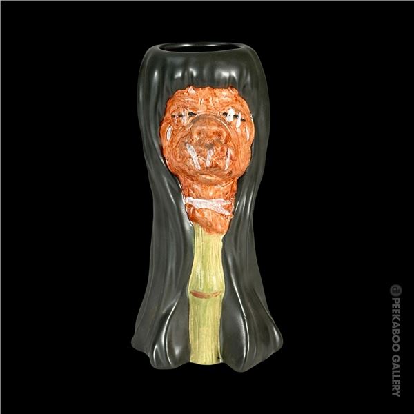 (1960s) A catalog item most probably imported by Orchids of Hawaii or Quon Quon. Nice faux wood design. VG+. 6.5"x2.5"dia.