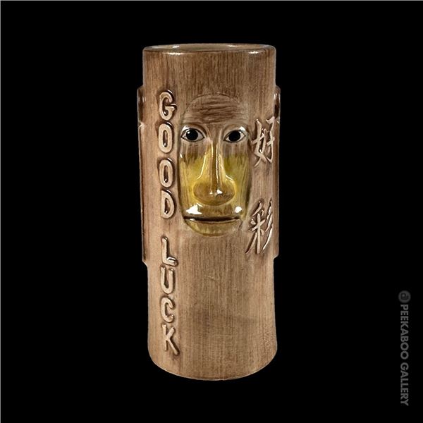 HAWAIIAN VILLAGE "GOOD LUCK" TIKI MUG w/ ORIGINAL OMC STICKER.191 - HAWAIIAN VILLAGE "GOOD LUCK" TIKI MUG w/ ORIGINAL OMC STICKER.