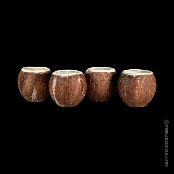 SET OF FOUR (4) TRADER VIC'S COCONUT MUGS.214 - SET OF FOUR (4) TRADER VIC'S COCONUT MUGS.