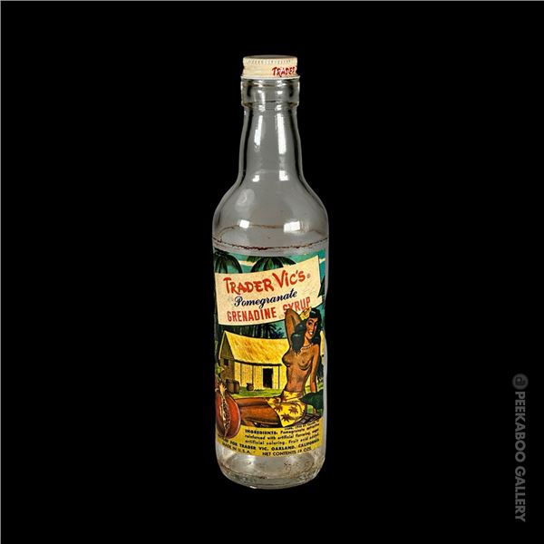 EMPTY TRADER VIC'S POMEGRANATE GRENADINE SYRUP BOTTLE.217 - EMPTY TRADER VIC'S POMEGRANATE GRENADINE SYRUP BOTTLE.