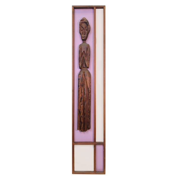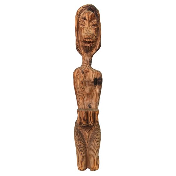 (1960s) Another early WITCO piece. This striking image of a wooden hand-carved female figure evokes the simplicity of what makes a compelling work of