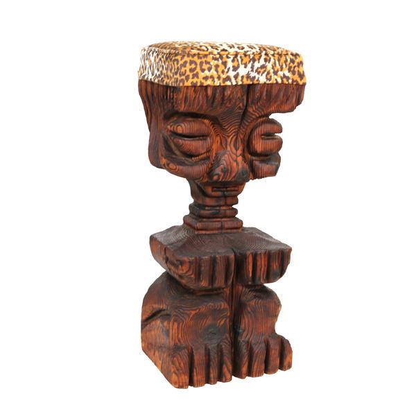 RARE WITCO "KAU" BARSTOOL TIKI STOOL WITH LEOPARD PRINT SEAT.483 - RARE WITCO "KAU" BARSTOOL TIKI STOOL WITH LEOPARD PRINT SEAT.