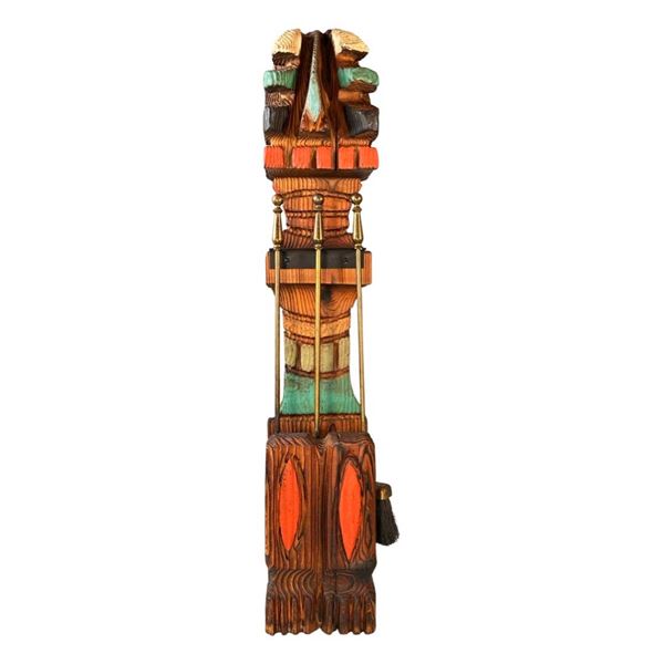 (1960s) The dual tones of the dark and light natural wood grains gives this Tiki pole an outstanding look. The split, sharp tongue is a great feature
