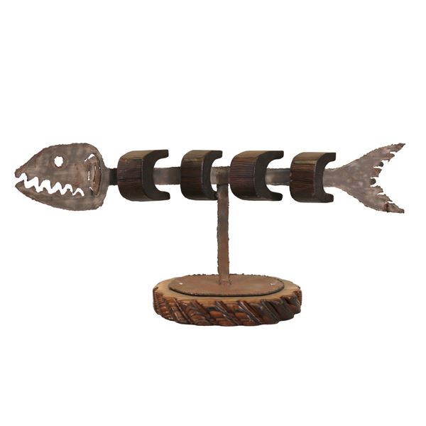 KEN PLEASANT WITCO PREHISTORIC METAL & WOOD FISH SCULPTURE.496 - KEN PLEASANT WITCO PREHISTORIC METAL & WOOD FISH SCULPTURE.