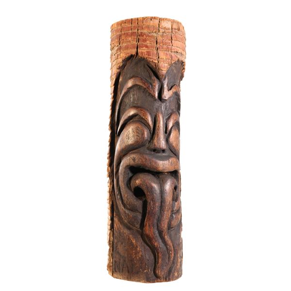VINTAGE CARVED TIKI POLE WITH CROOKED TONGUE.498 - VINTAGE CARVED TIKI POLE WITH CROOKED TONGUE.