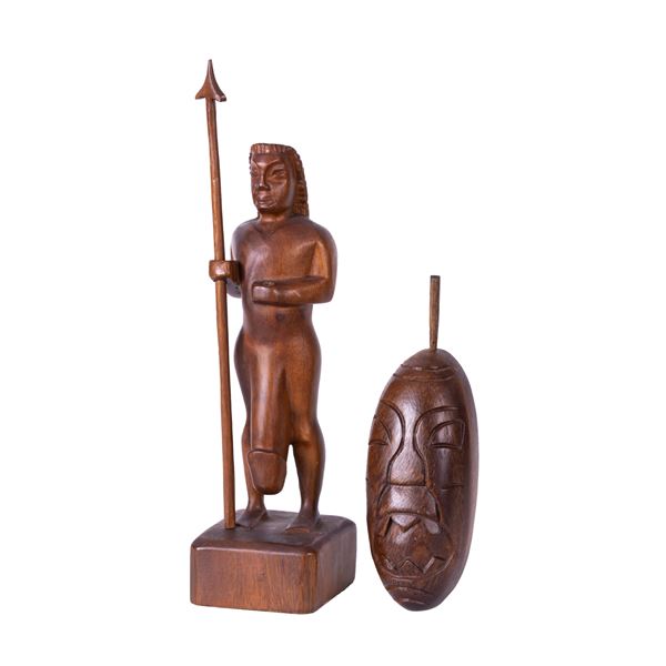 (1960s) Light 'em up with this fabulous Tiki table lighter...from the desk of Don Draper, no doubt. Black wood with removeable, refillable light...