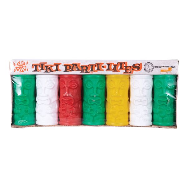 (1960s) A rare, unopened set of TIKI PARTI-LITES, the staple of any backyard luau or home Tiki bar! The set is still sealed in its original shrink wra