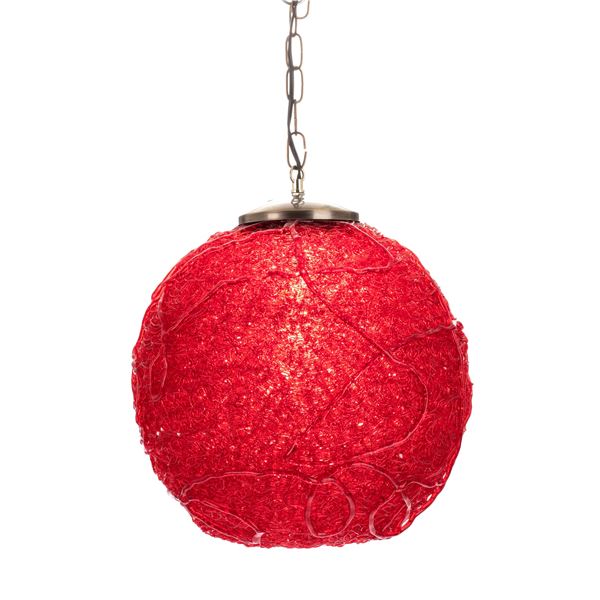 (1960s) An iconic item from many mid-century home decor this wild, spaghetti designed hanging lamp is created with intricate swirls of solid, blue pla