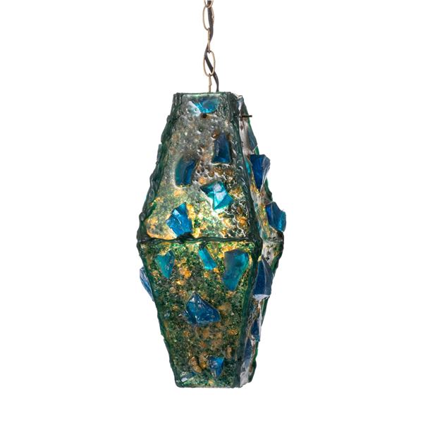 150 - VINTAGE BLUE SPAGHETTI HANGING LAMP.Peekaboo Gallery