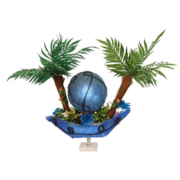 196 - VINTAGE CARVED PALM TIKI TABLE LAMP.Peekaboo Gallery