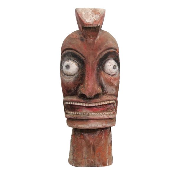 (1960s) The classic Marquesan Tiki with its large eyes and wide mouth, this hand carved tourist trade idol gives an other-worldly alien effect. 11.5...