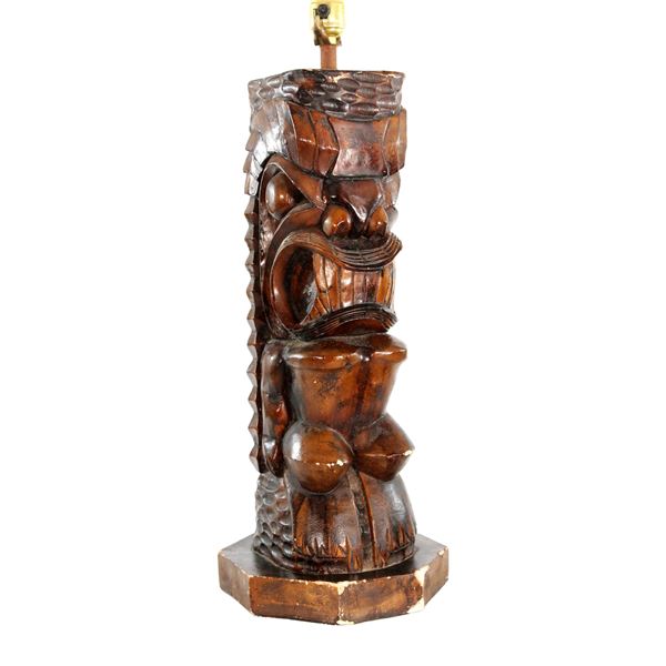 197 - CARVED TIKI TABLE LAMP.Peekaboo Gallery